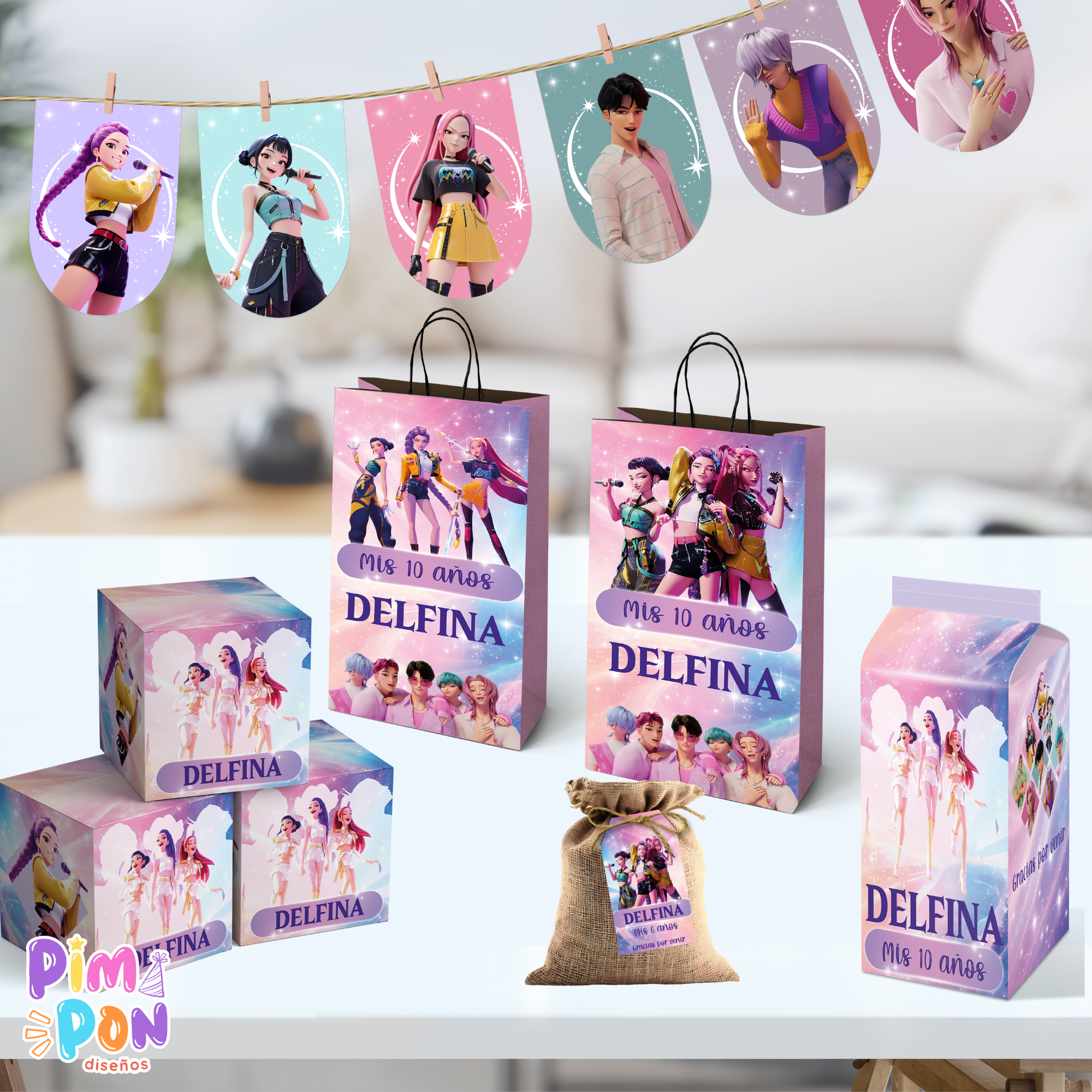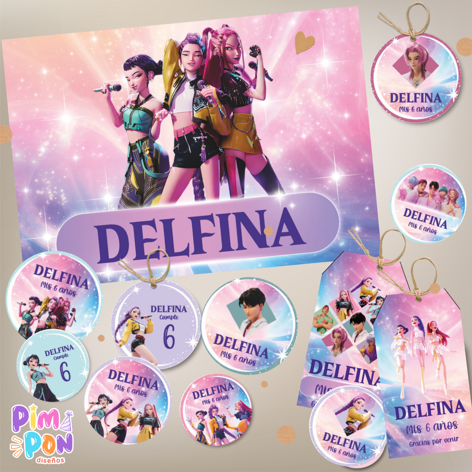 - El kit es tal como lo ves publicado, no hacemos cambios de personajes, tipografía o color.