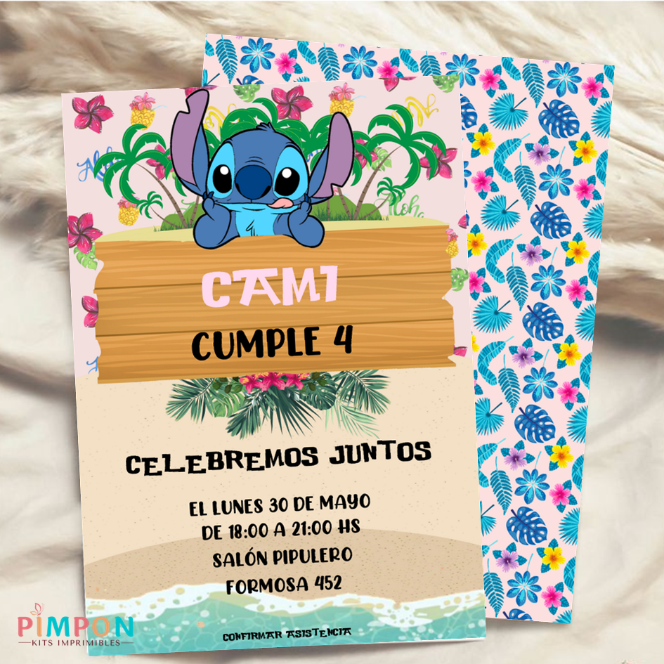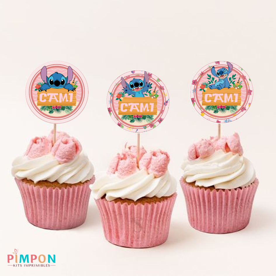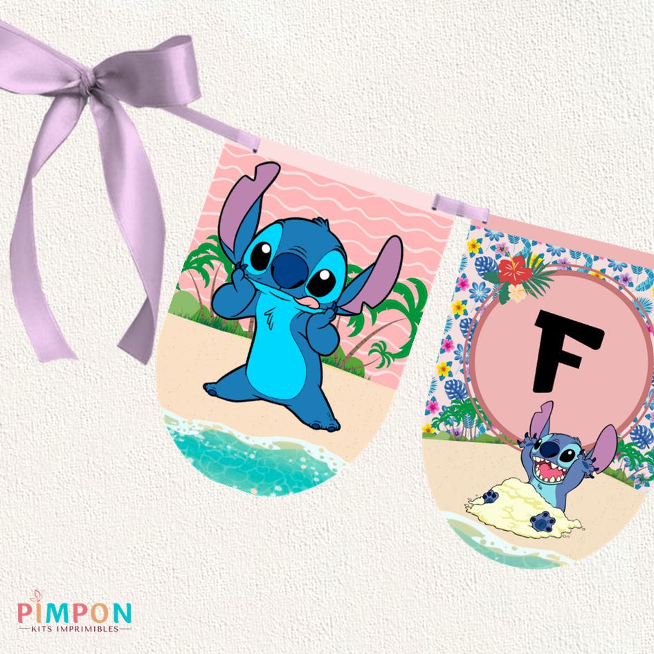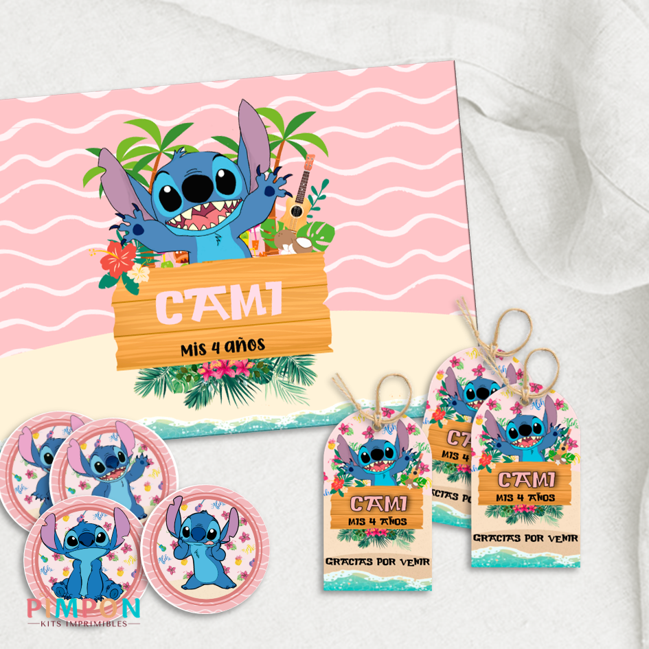kit imprimible personalizado - STITCH ROSA