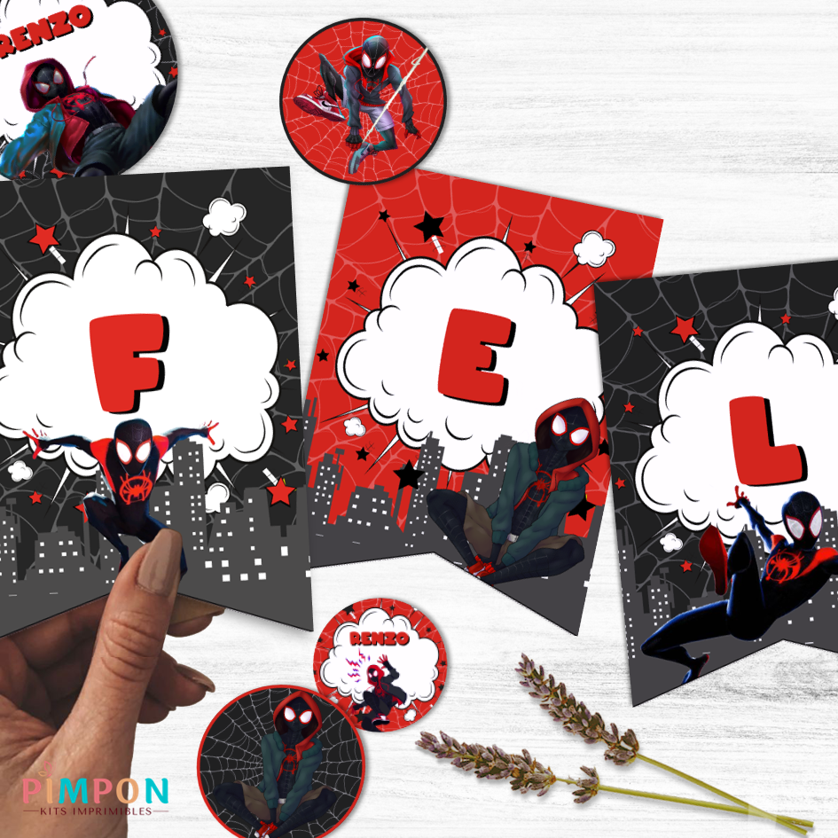 kit imprimible textos editables - SUPERHEROES - SPIDERMAN MILES MORALES