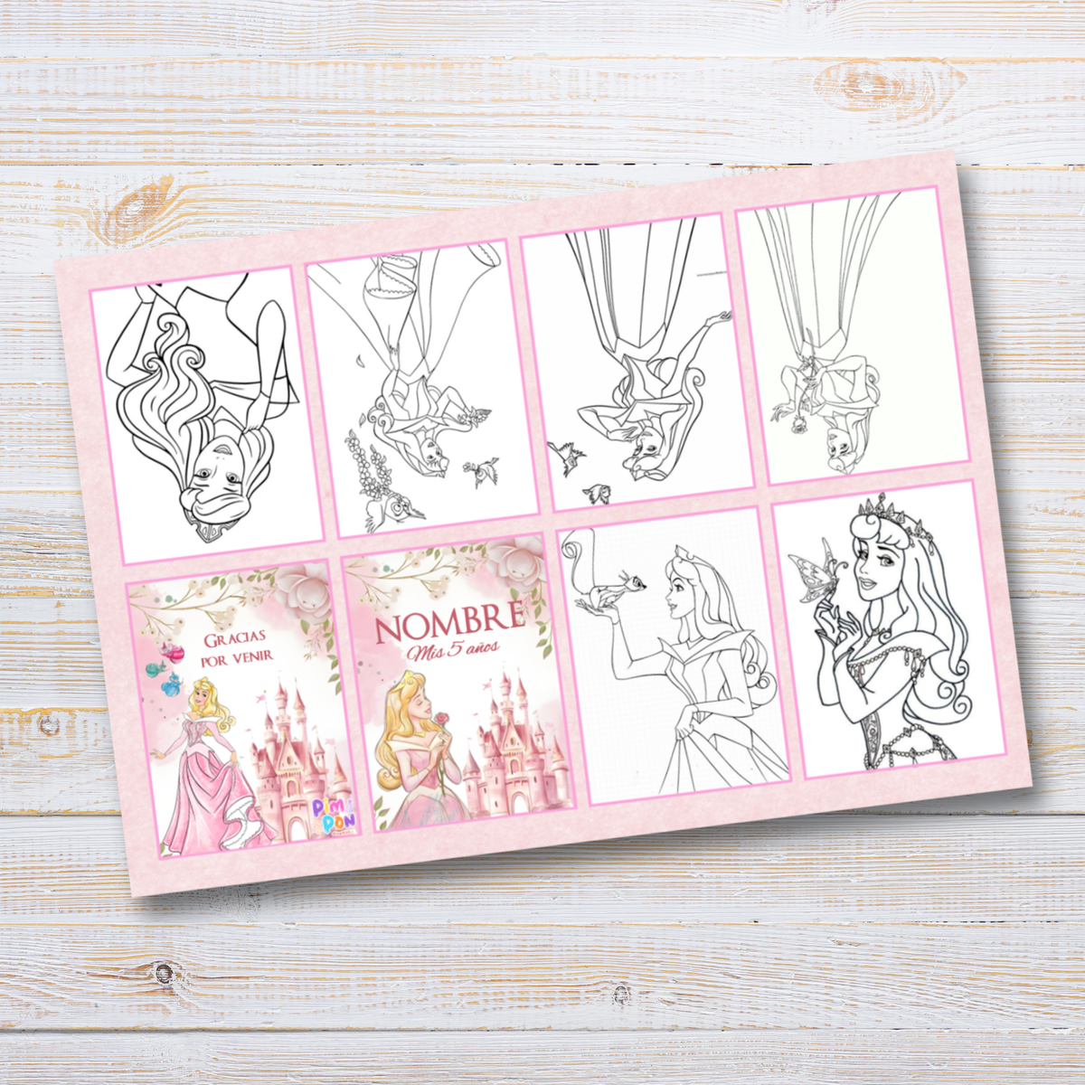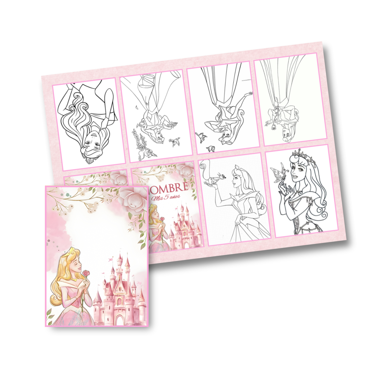 Juego imprimible editable - souvenir - mini libro para colorear la bella durmiente