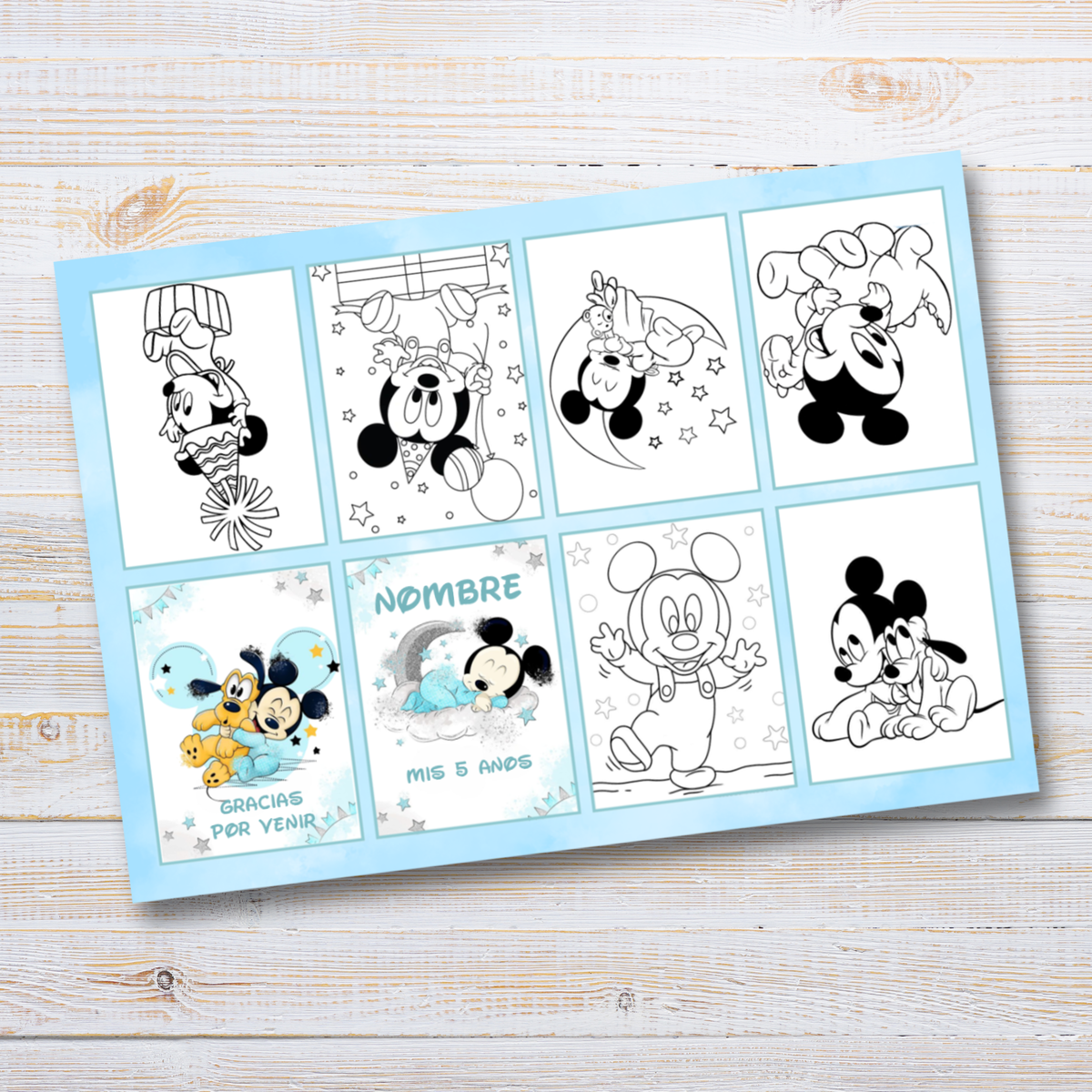 Juego imprimible editable - souvenir - mini libro para colorear mickey bebe