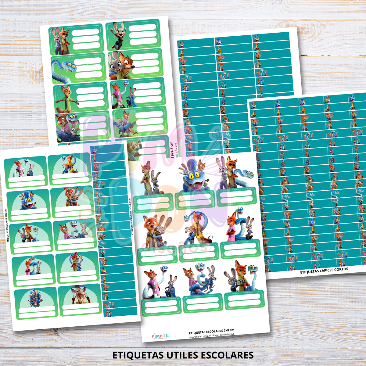 Kit Imprimible Etiquetas Escolares - Zootopia 2