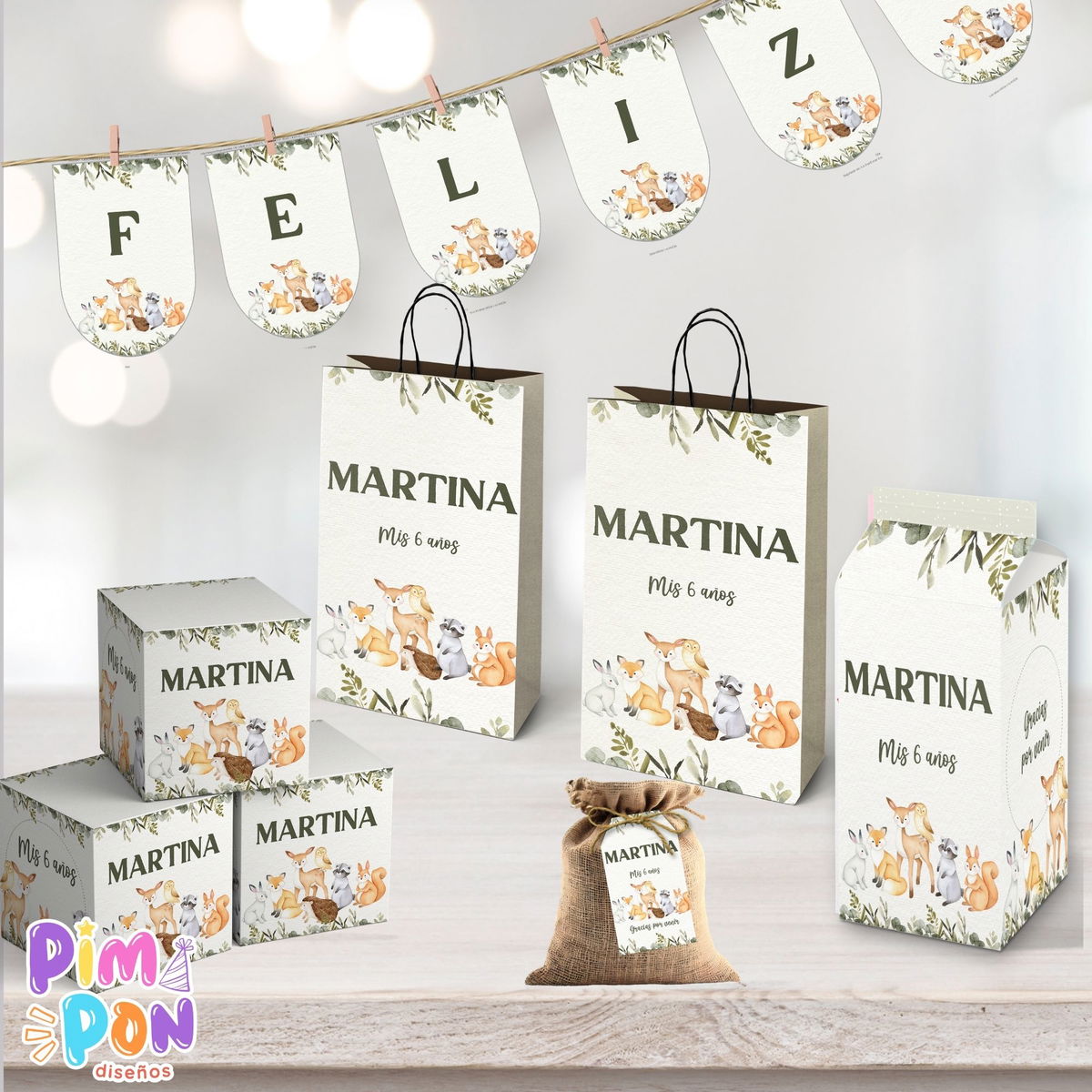 kit imprimible personalizado - animalitos del bosque encantado 2