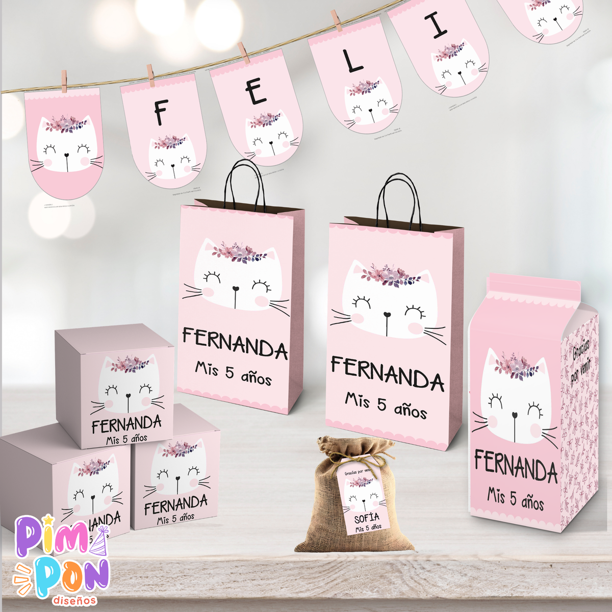 kit imprimible personalizado - gatitos mod 4 rosa
