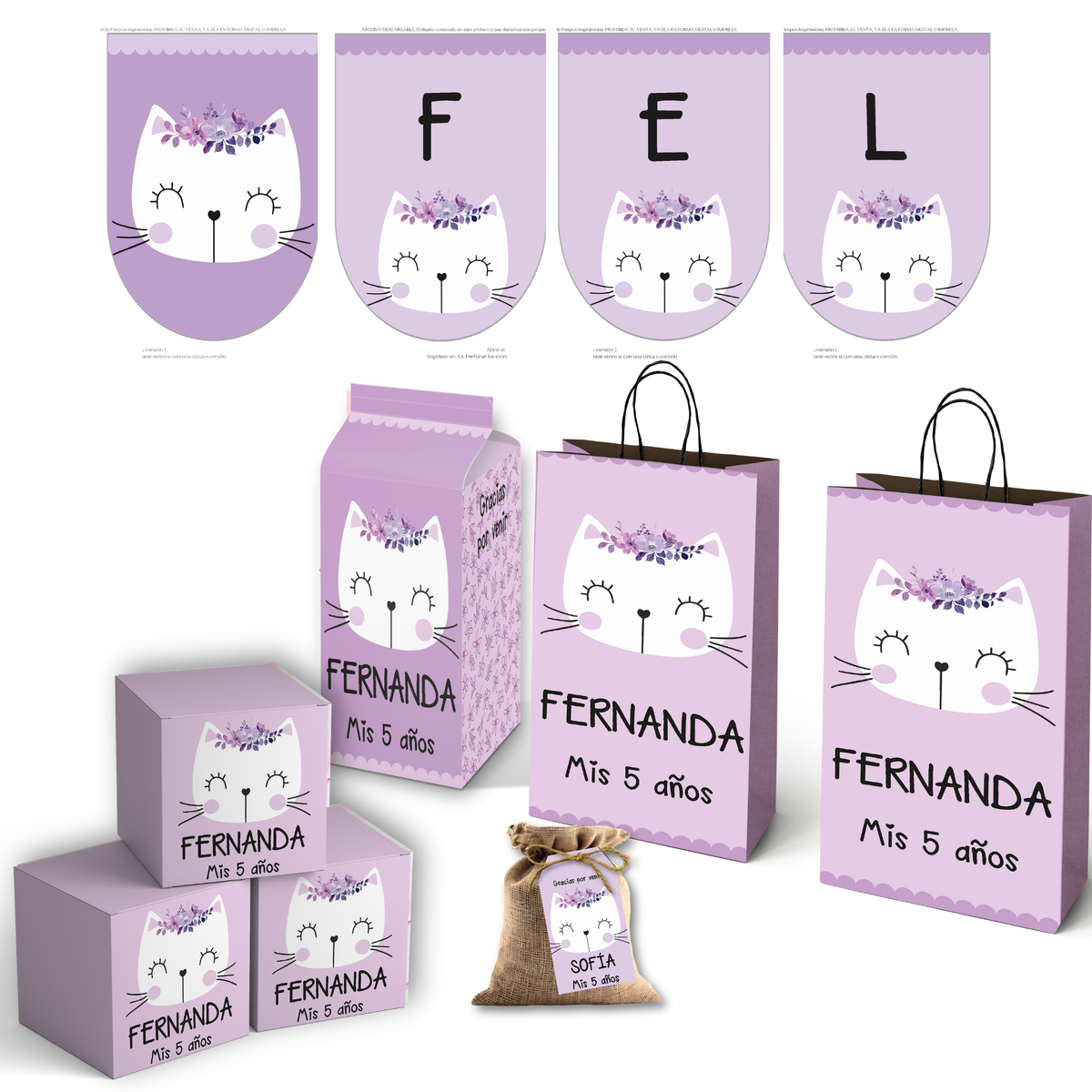 - El kit no es editable y se envia protegido con contraseña (solo se imprime con ADOBE READER), no se podrá usar en plotter de corte ni abrirlos en programas de diseño.
