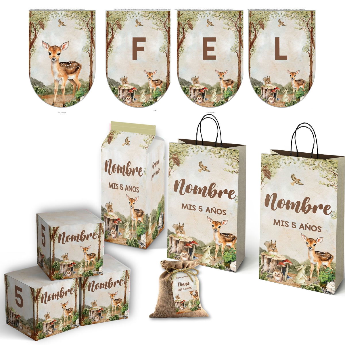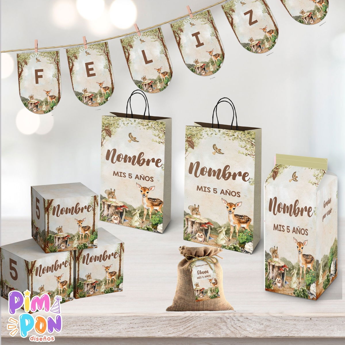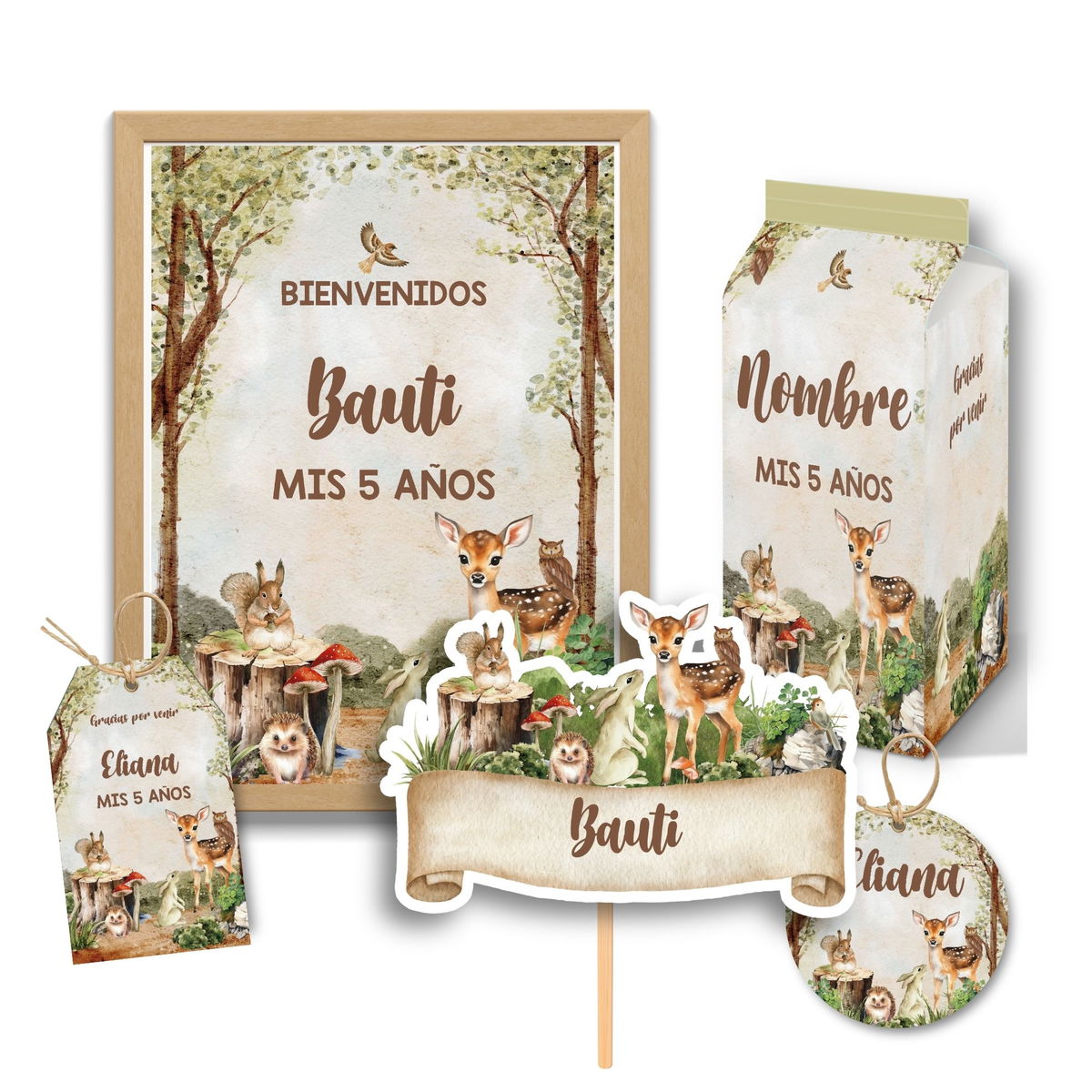 kit imprimible textos editables - animalitos del bosque encantado 3