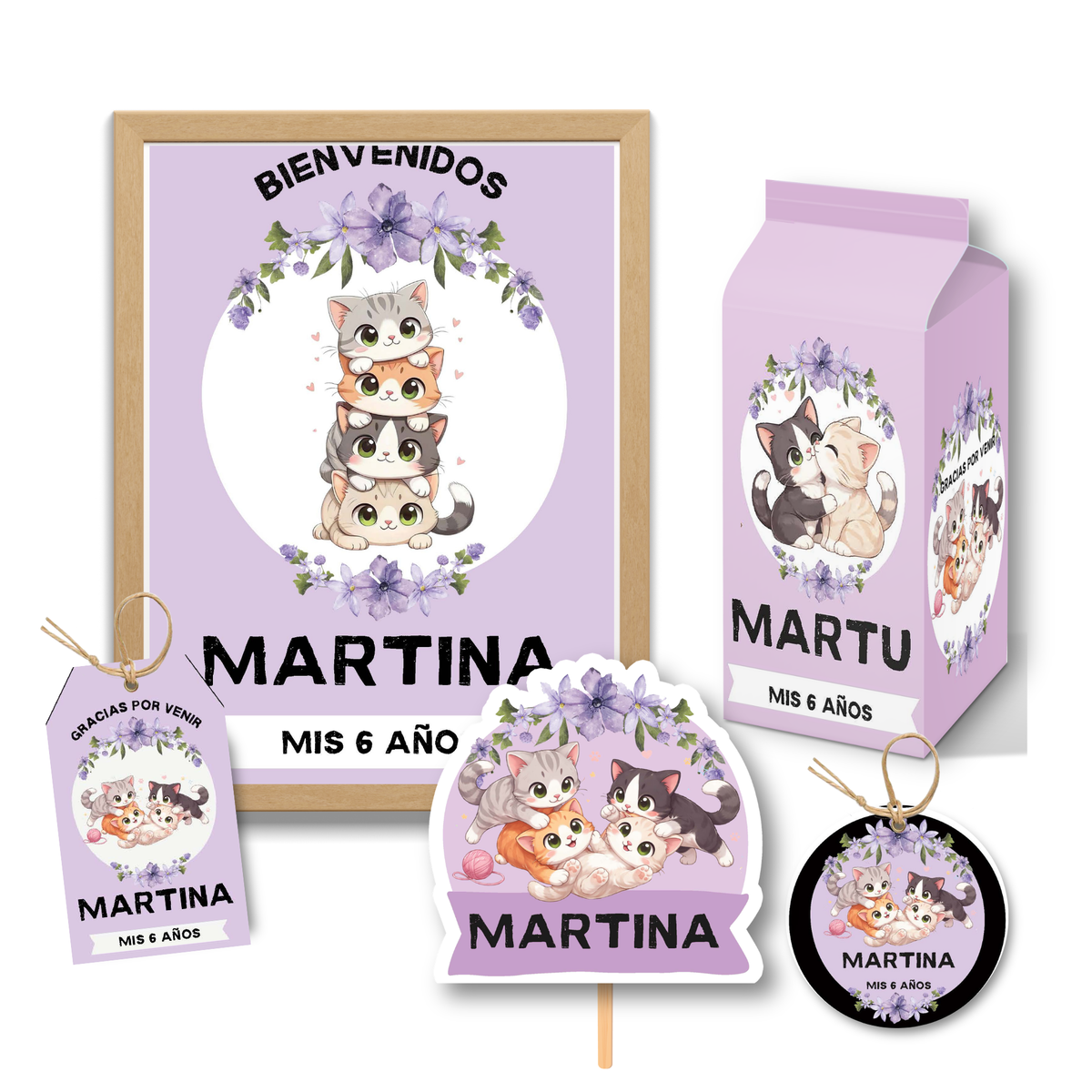 - El kit es tal como lo ves publicado, no hacemos cambios de personajes, tipografía o color.