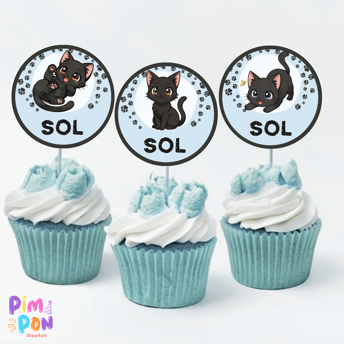 kit imprimible textos editables - gatitos mod 3 azul
