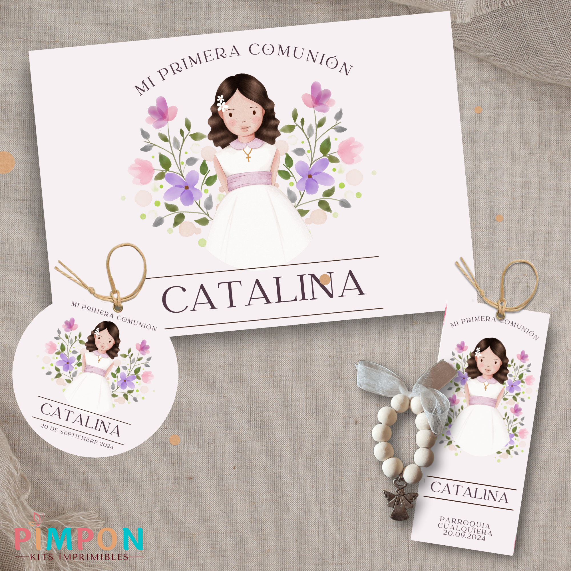 kit imprimible personalizado - Comunión, Bautismo, confirmación mod. 25