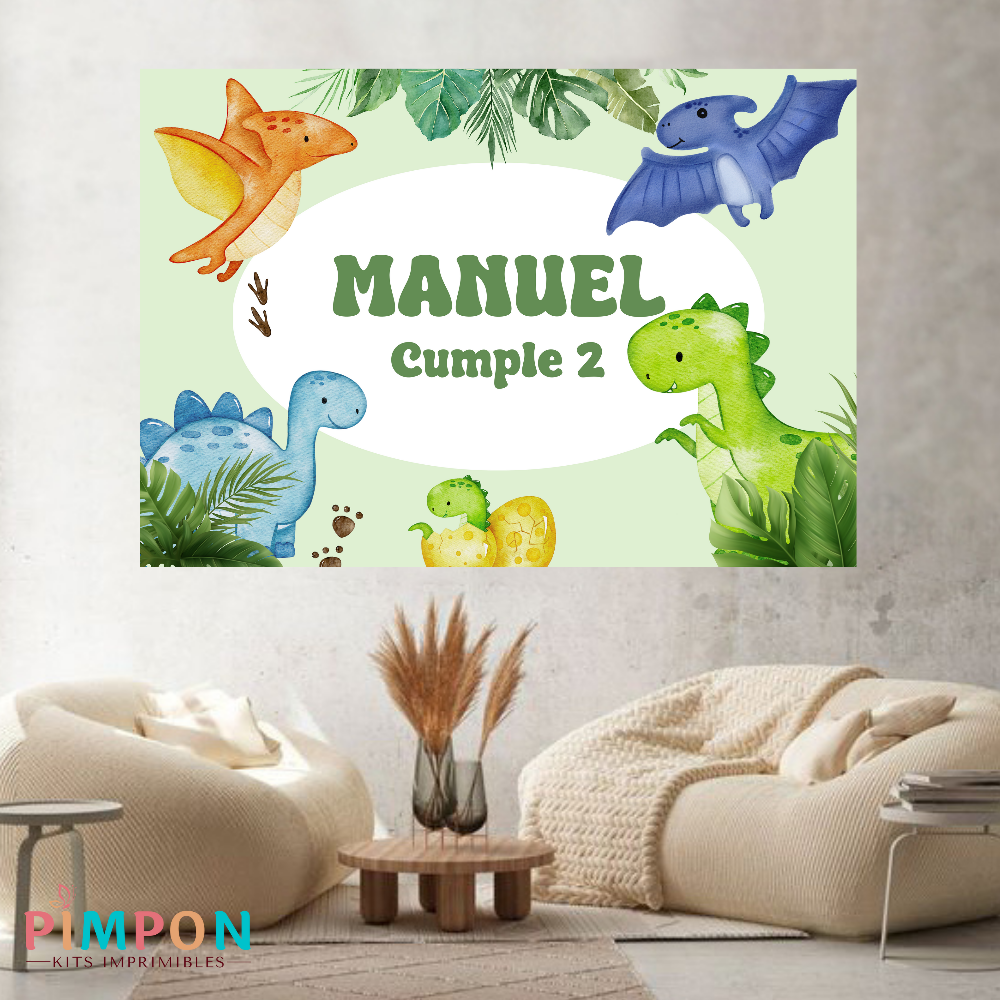 banner imprimible digital 1,20 mts - dinosaurio acuarela verde 2