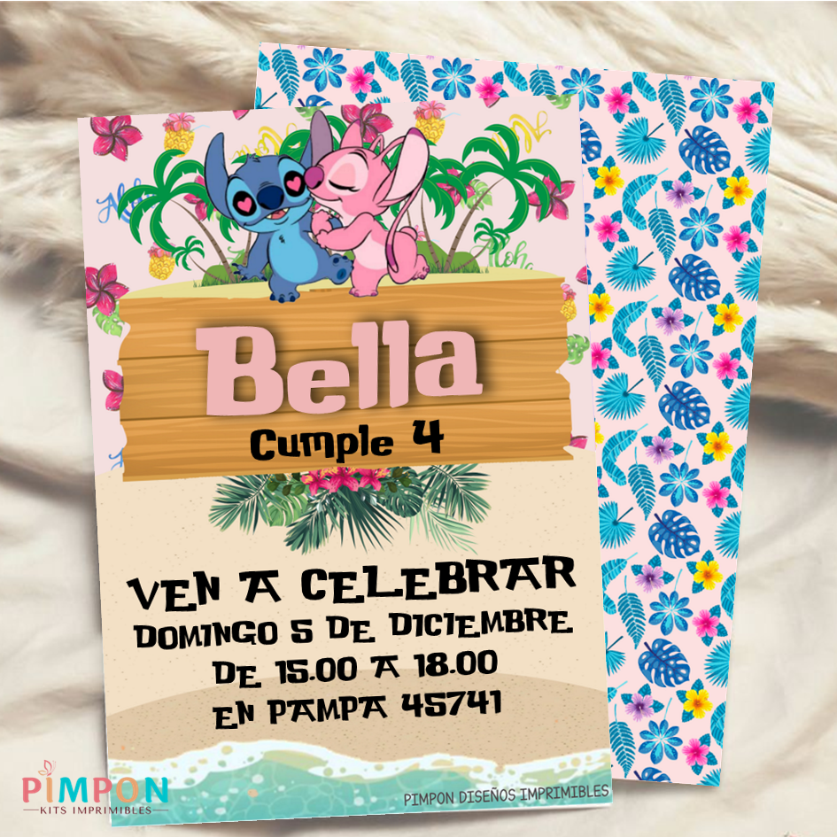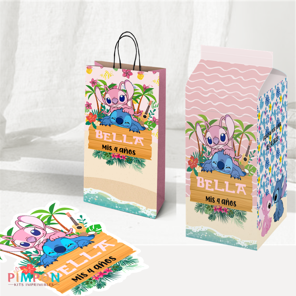 kit imprimible textos editables - STITCH Y ANGEL ROSA