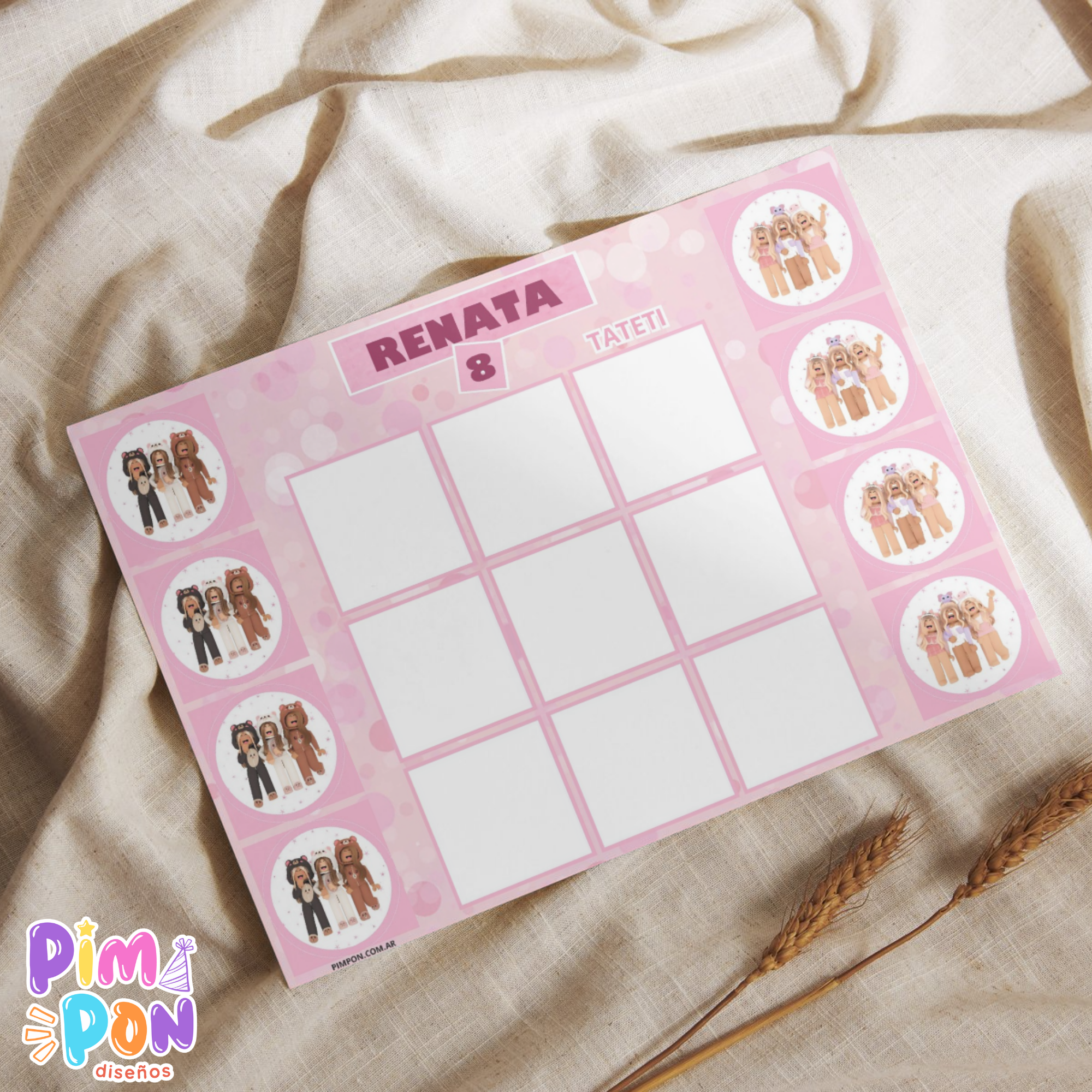 Juego imprimible - souvenir - ta te ti roblox ROSA