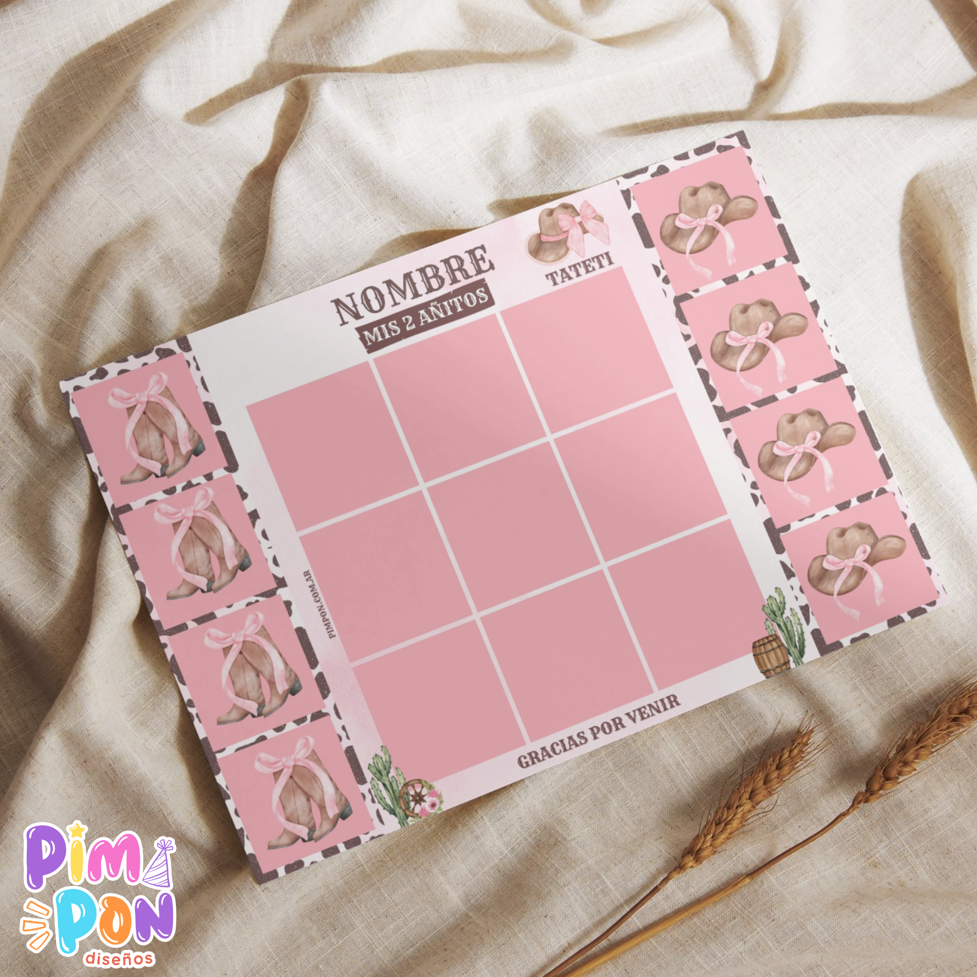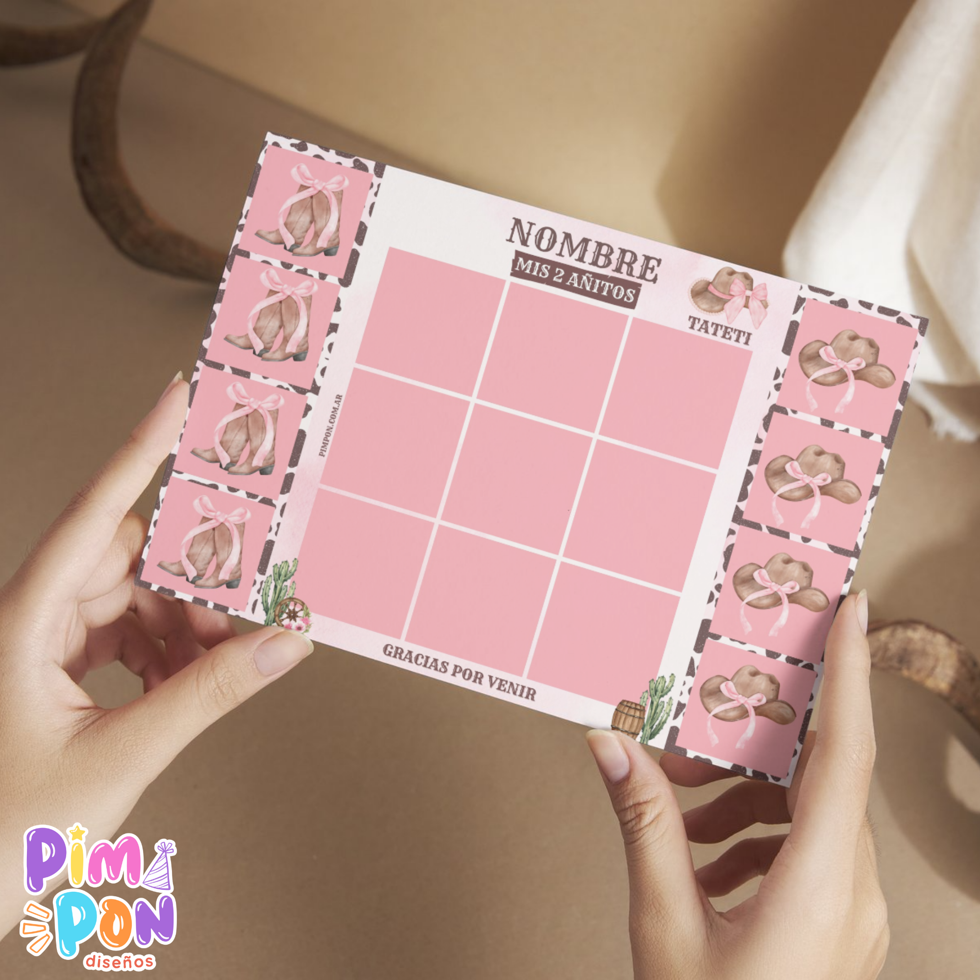 Juego imprimible - souvenir - ta te ti cowgirl
