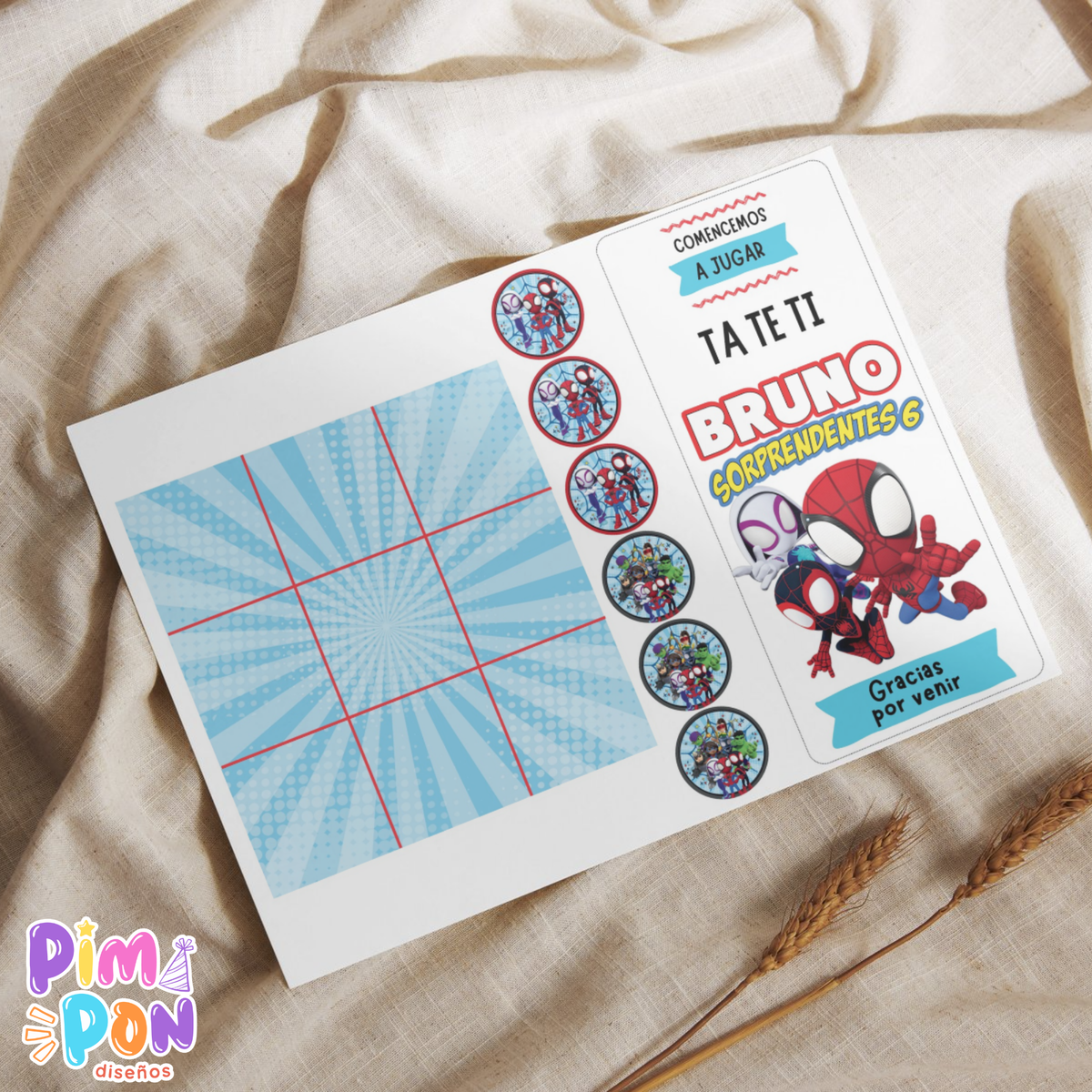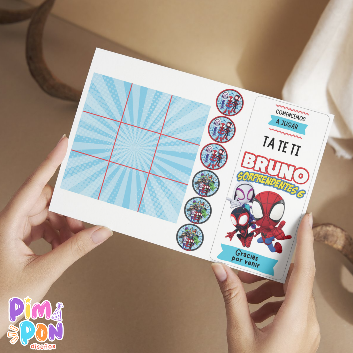 Juego imprimible - souvenir - ta te ti spidey y sus sorprendentes amigos