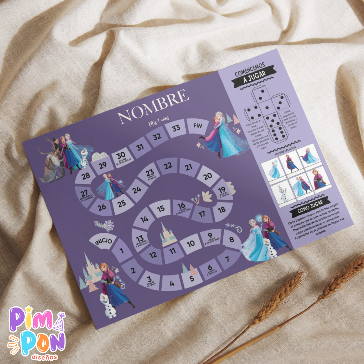 Un archivo PDF: incluye un juego imprimible en alta resolución personalizada con los datos del cumpleañero/a.