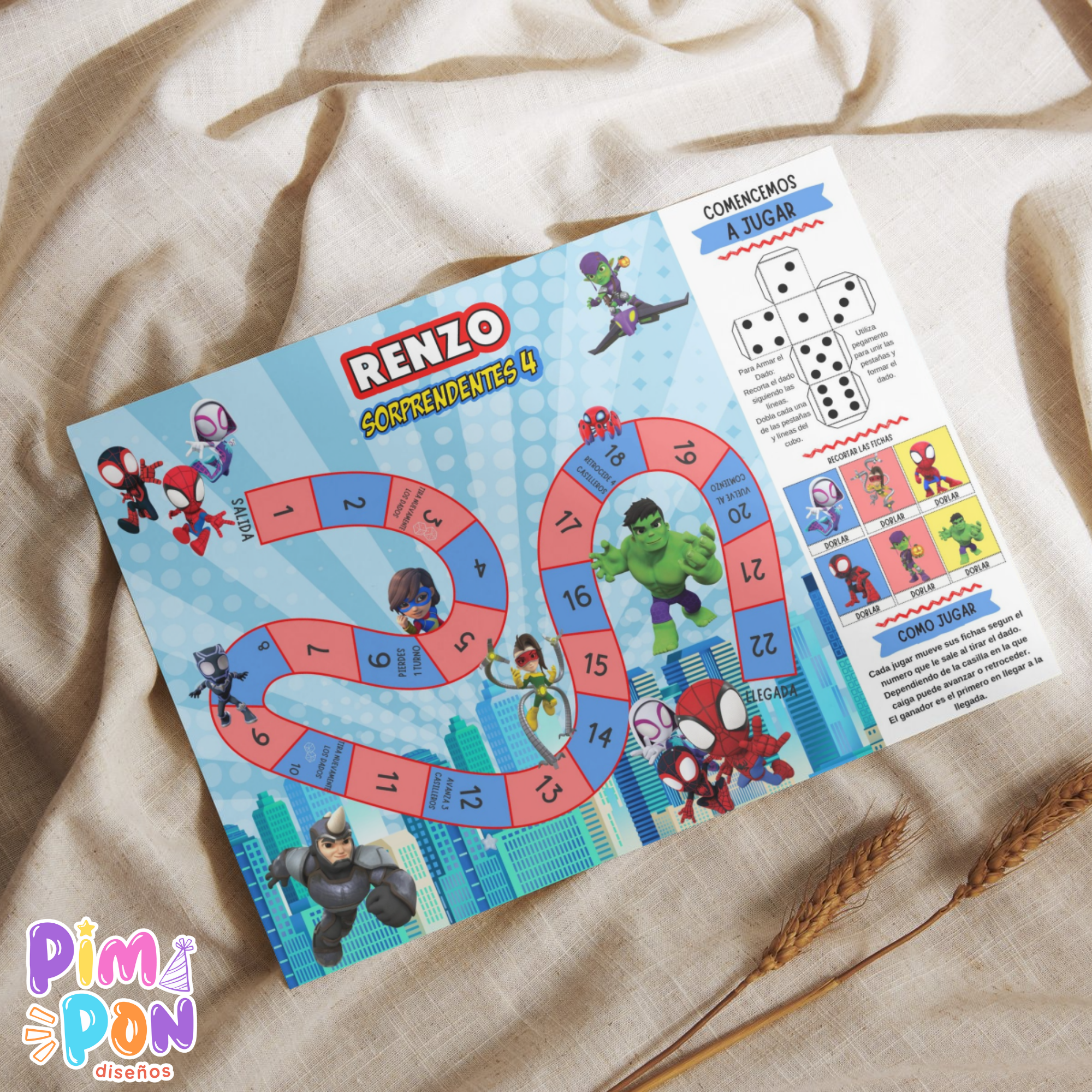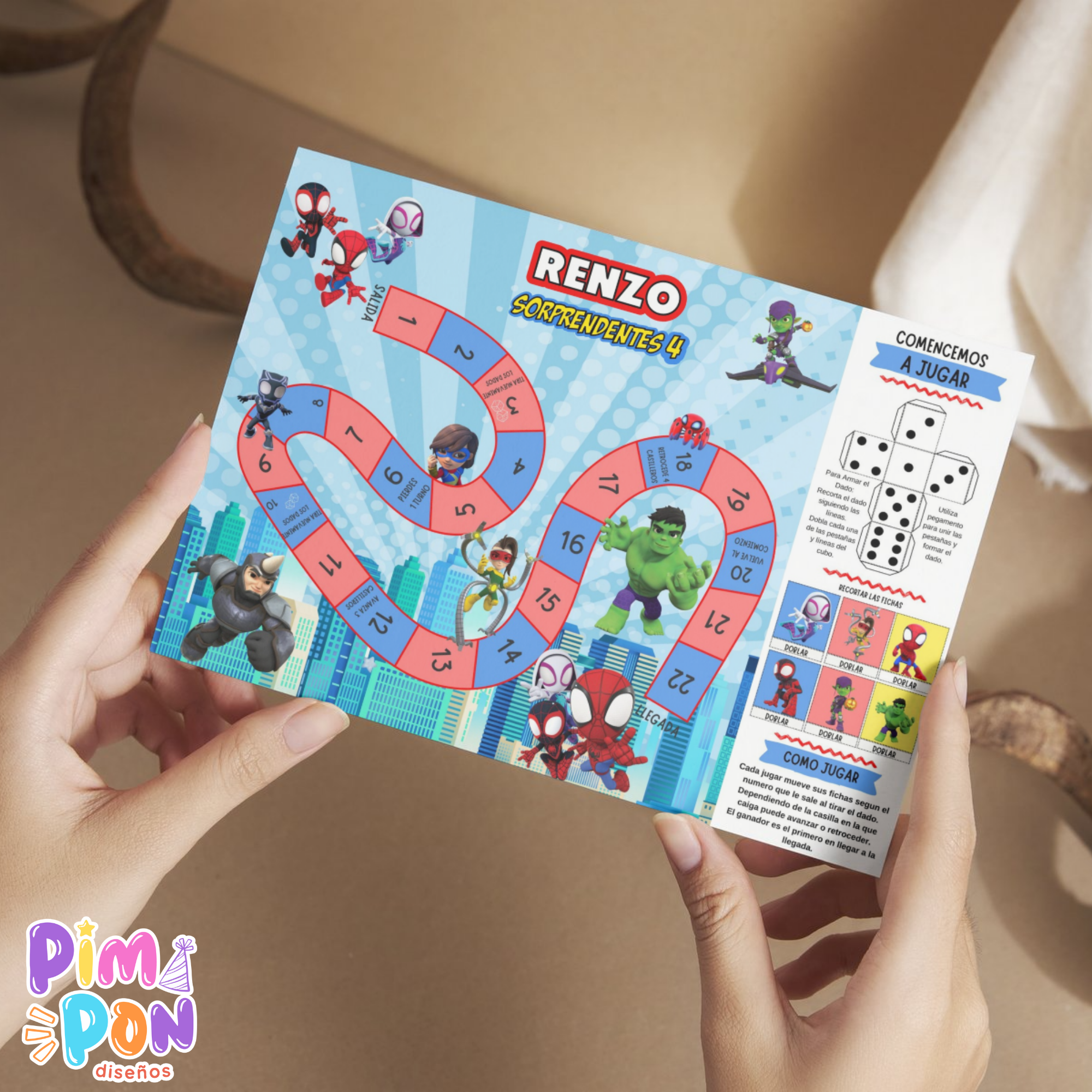 Un archivo PDF: incluye un juego imprimible en alta resolución personalizada con los datos del cumpleañero/a.