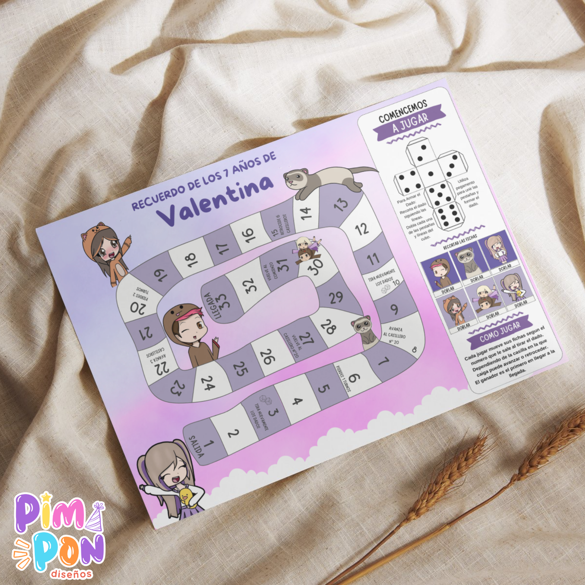 Un archivo PDF: incluye un juego imprimible en alta resolución personalizada con los datos del cumpleañero/a.