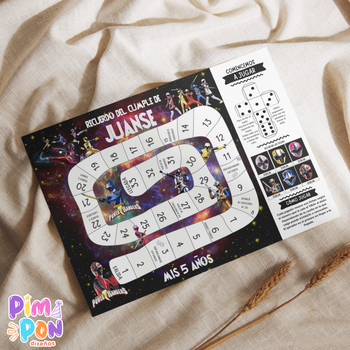 Juego imprimible - souvenir - juego de la oca power rangers