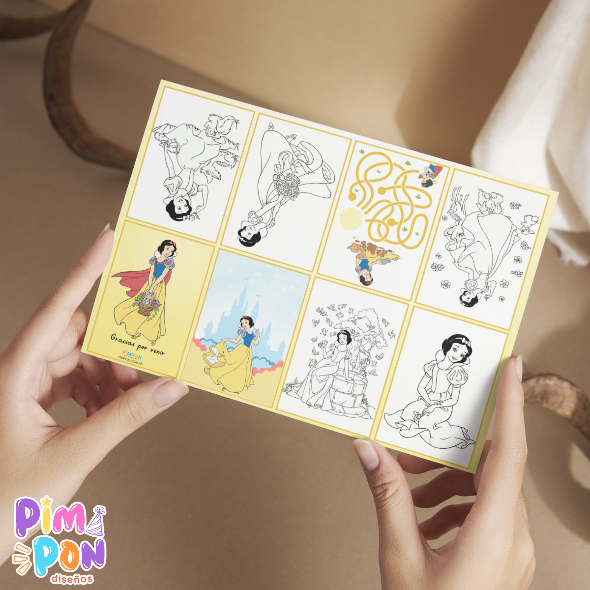 Juego imprimible - souvenir - mini libro para colorear blancanieves