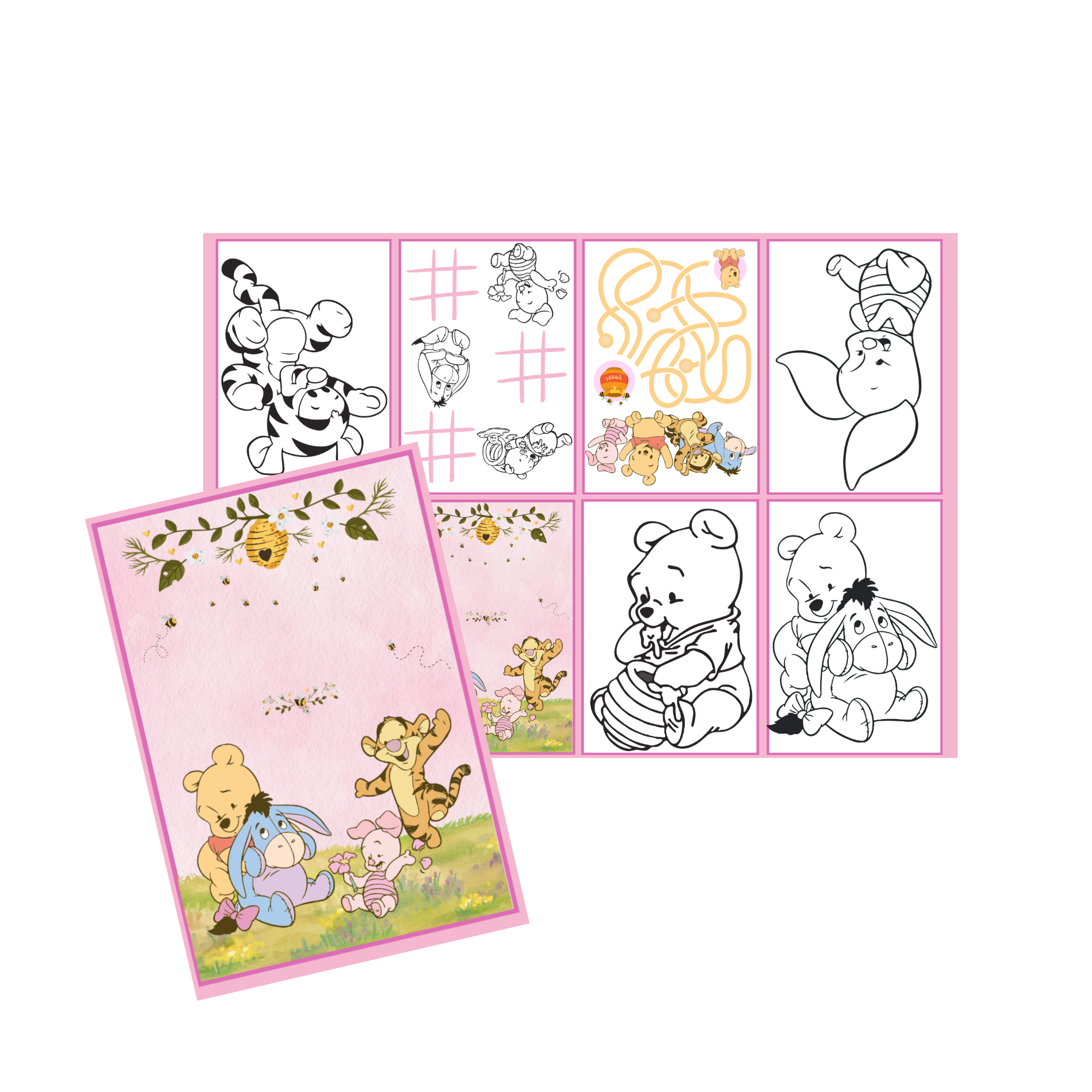 Juego imprimible - souvenir - mini libro para colorear winnie pooh rosa
