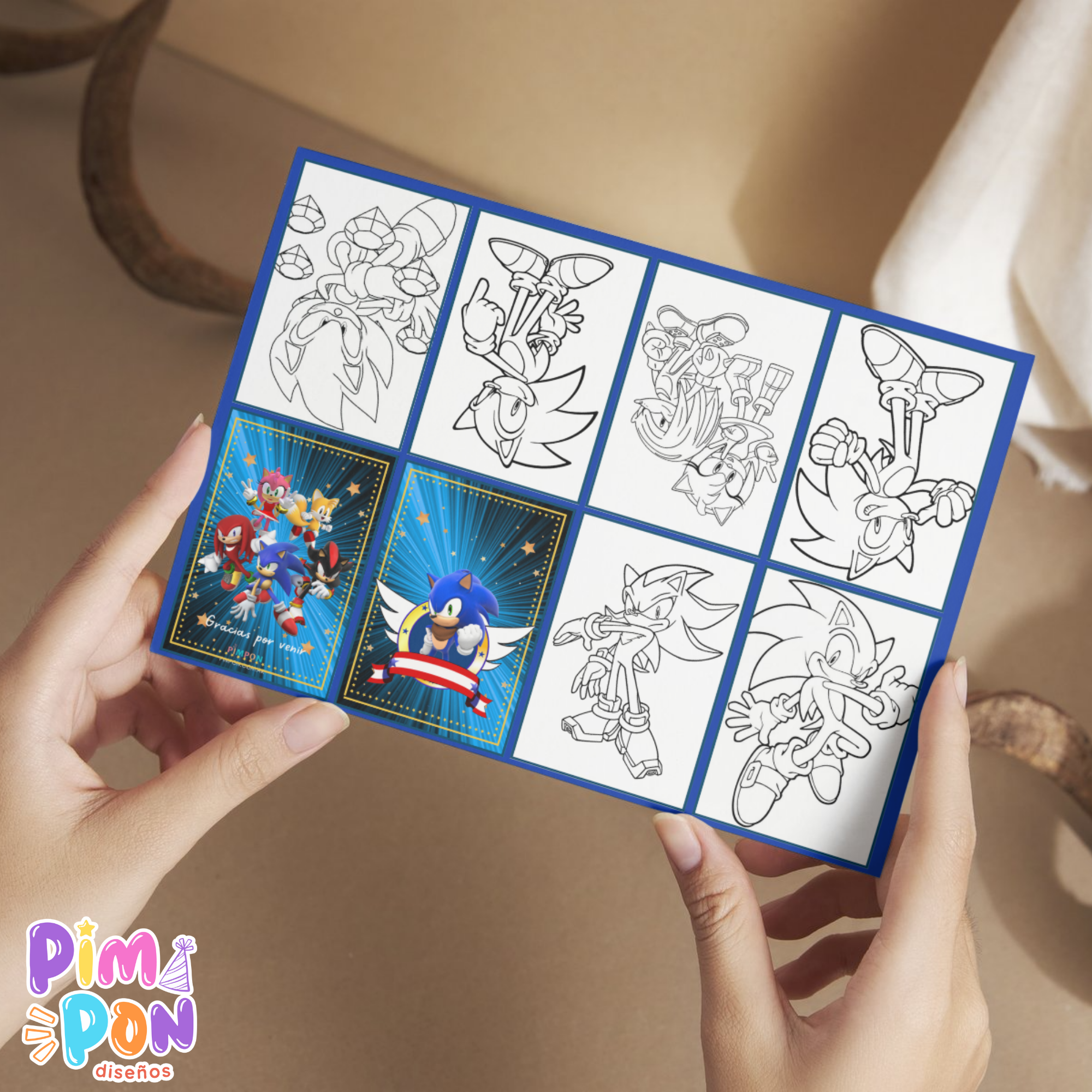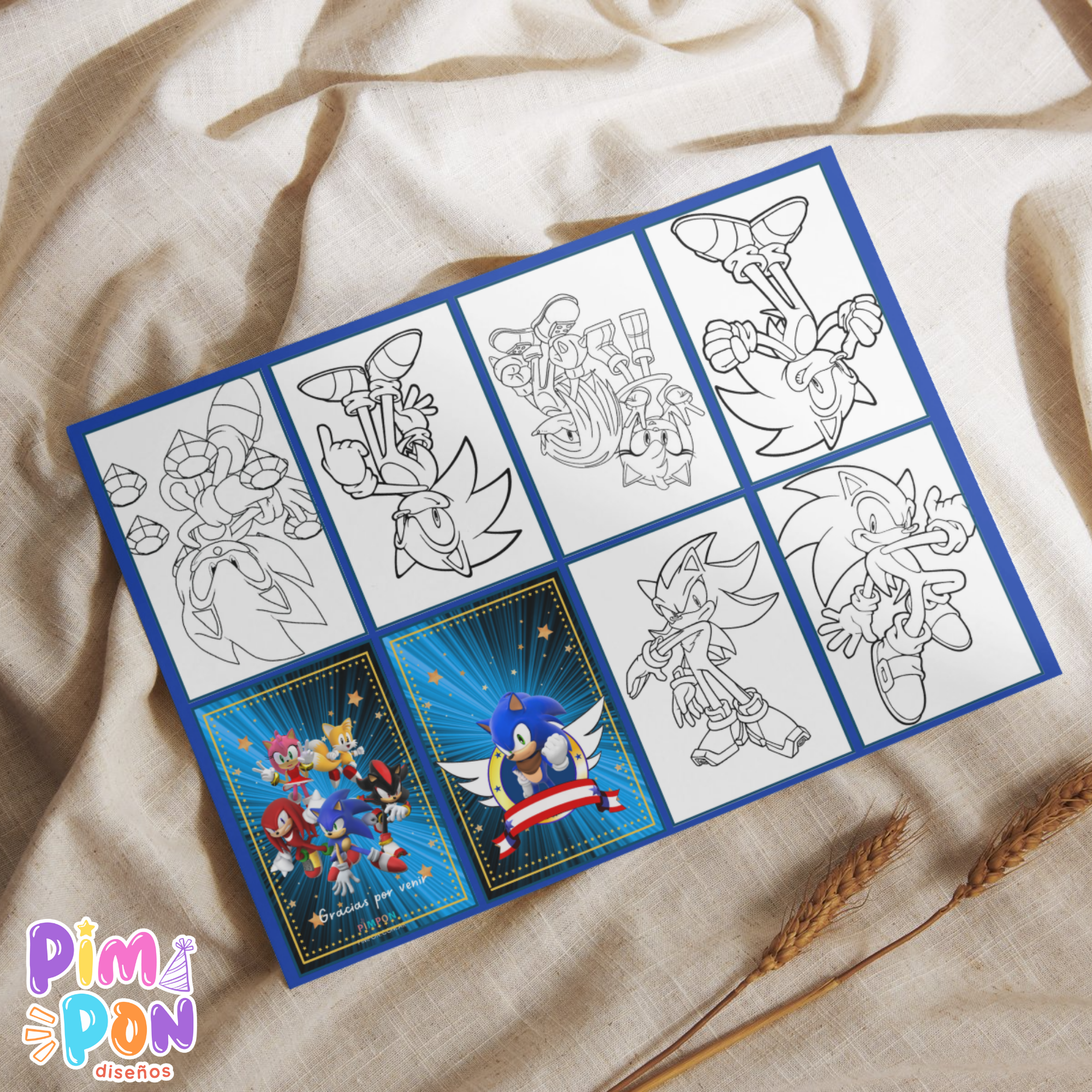 Juego imprimible - souvenir - mini libro para colorear sonic