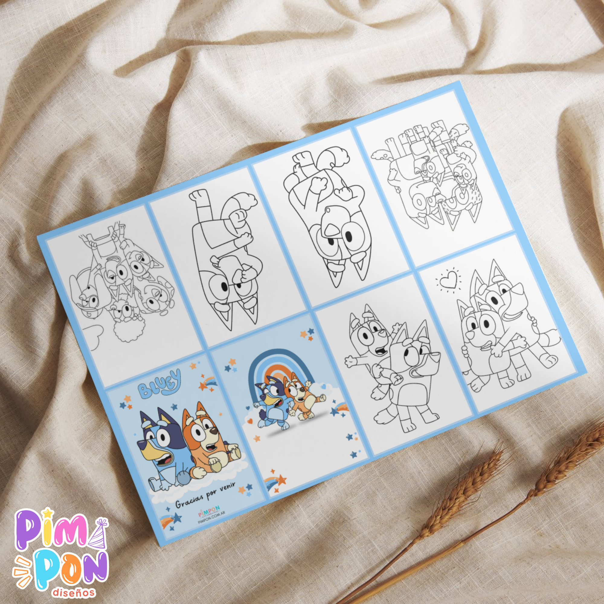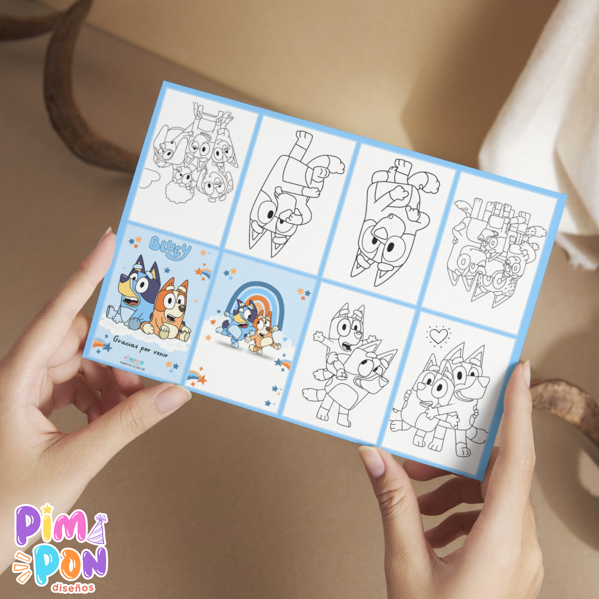 Juego imprimible - souvenir - mini libro para colorear bluey