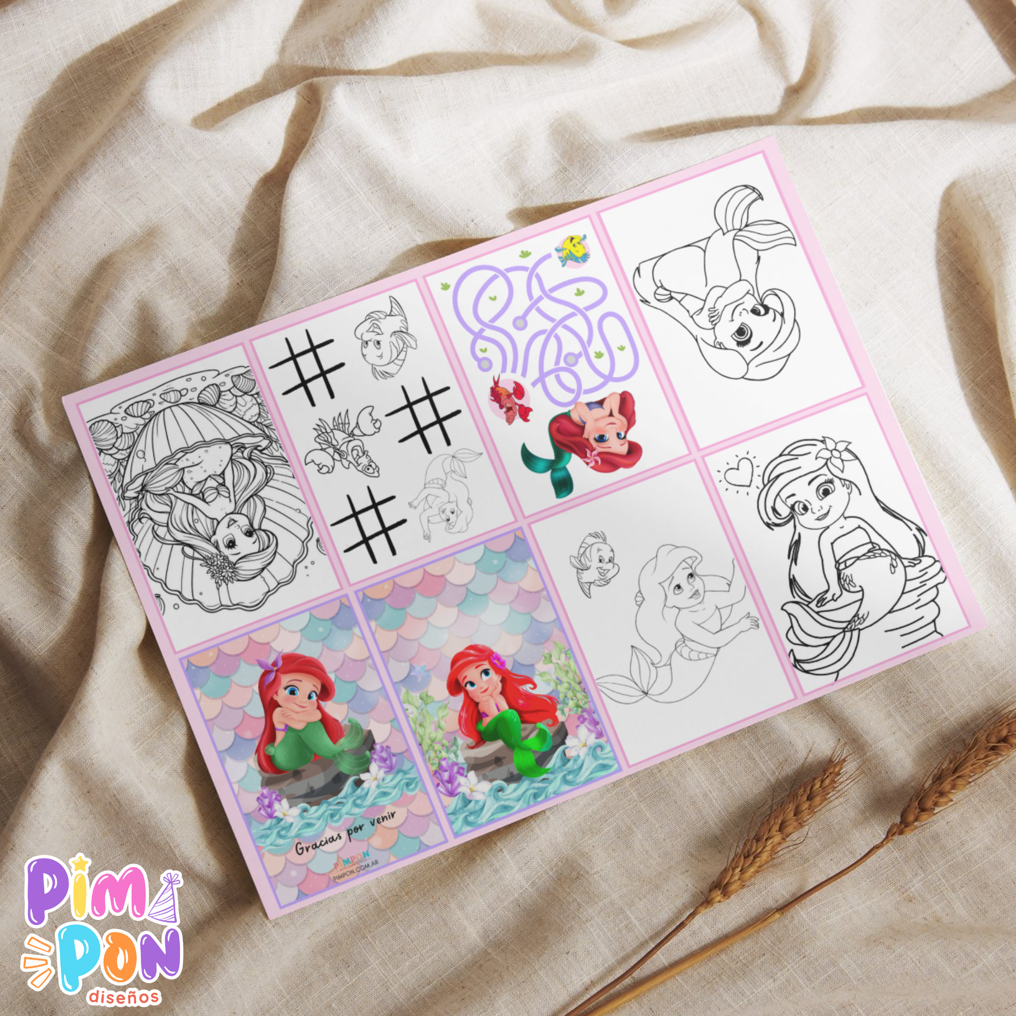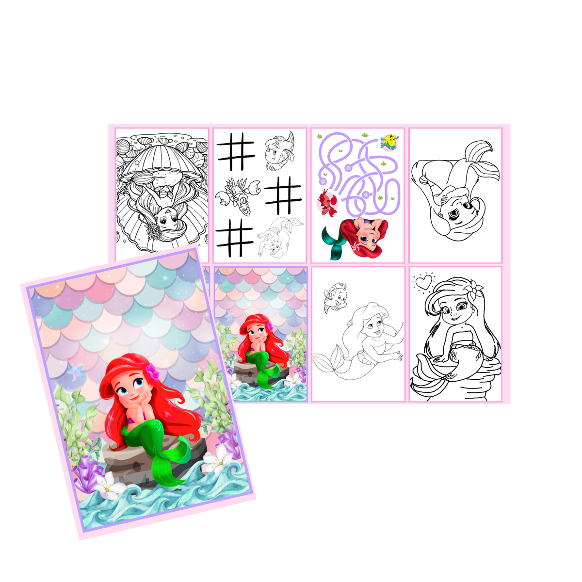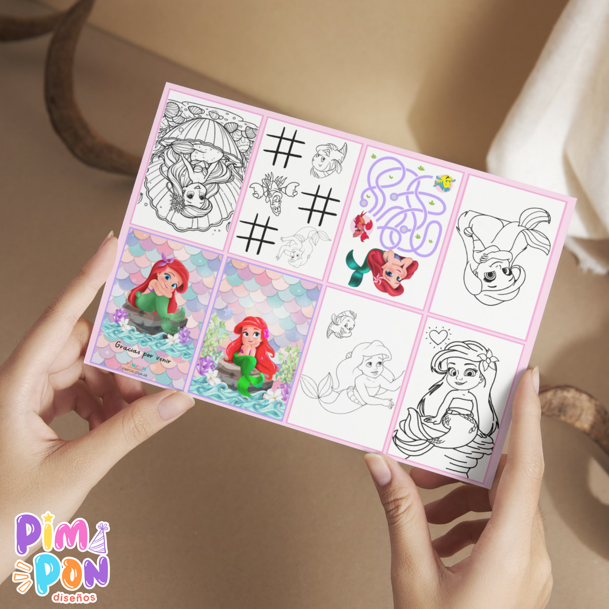 Juego imprimible - souvenir - mini libro para colorear la sirenita bebe
