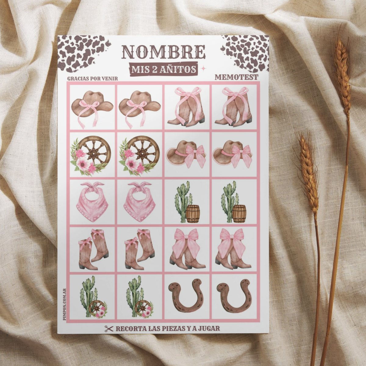 Juego imprimible - souvenir - memotest cowgirl
