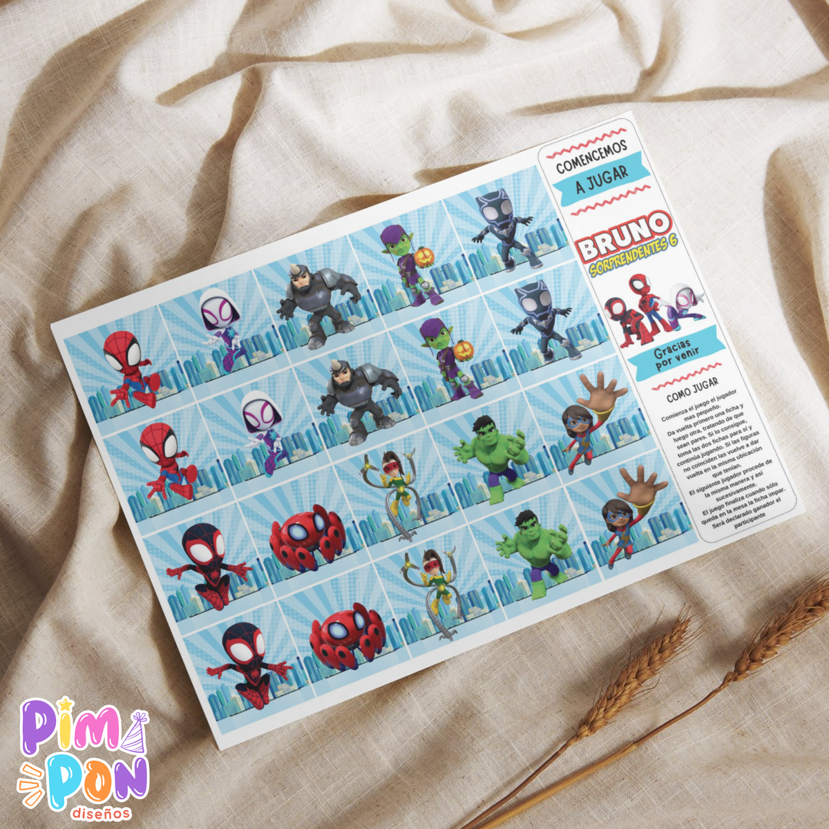 Juego imprimible - souvenir - memotest spidey y sus sorprendentes amigos