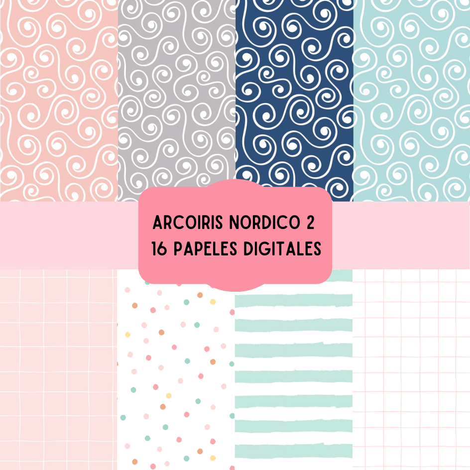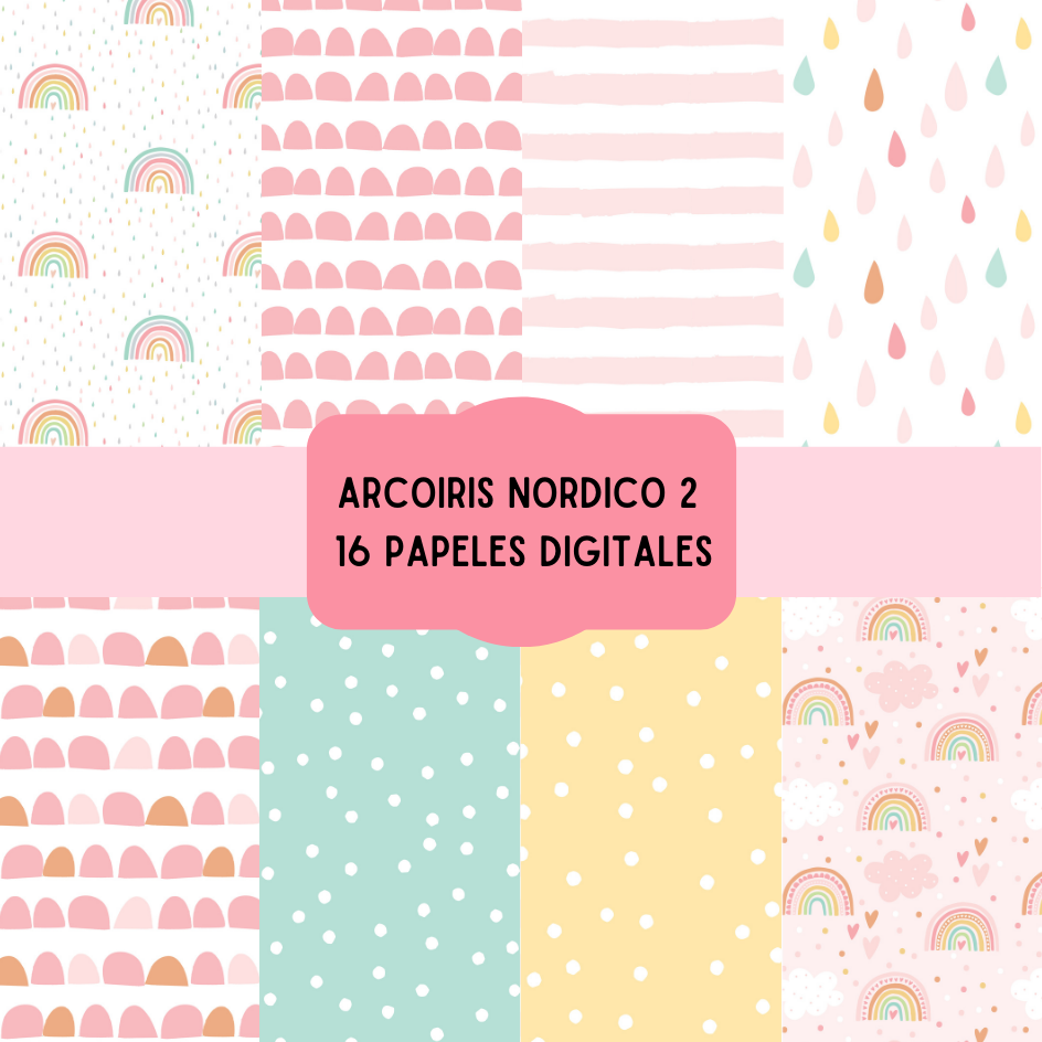 Cliparts + papeles digitales - arcoiris nordicos - coleccion 2