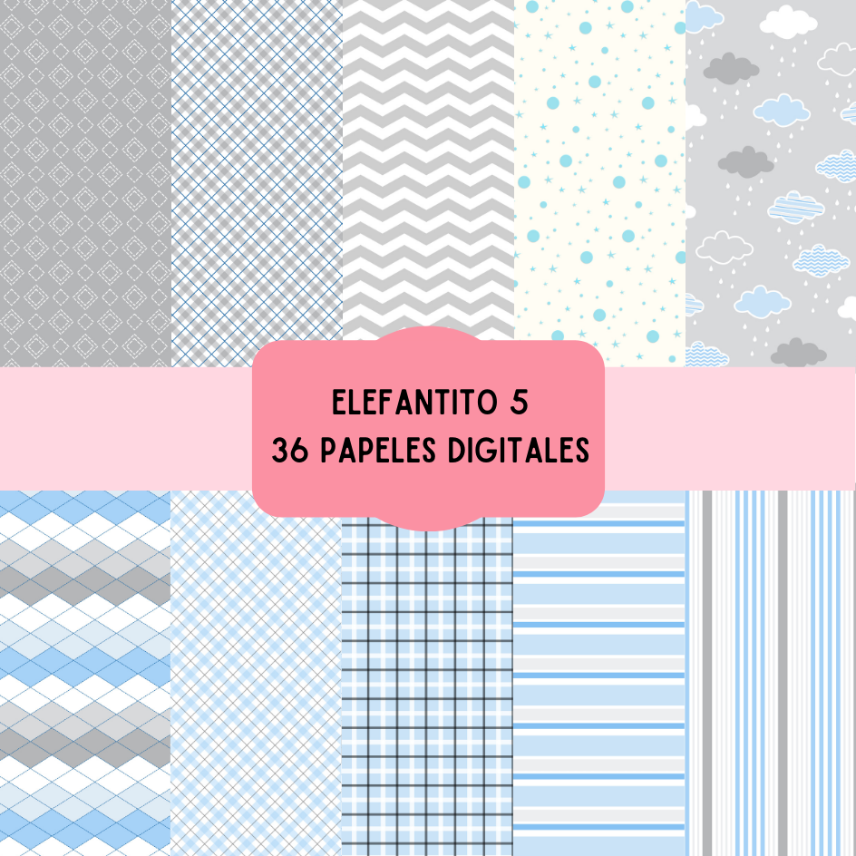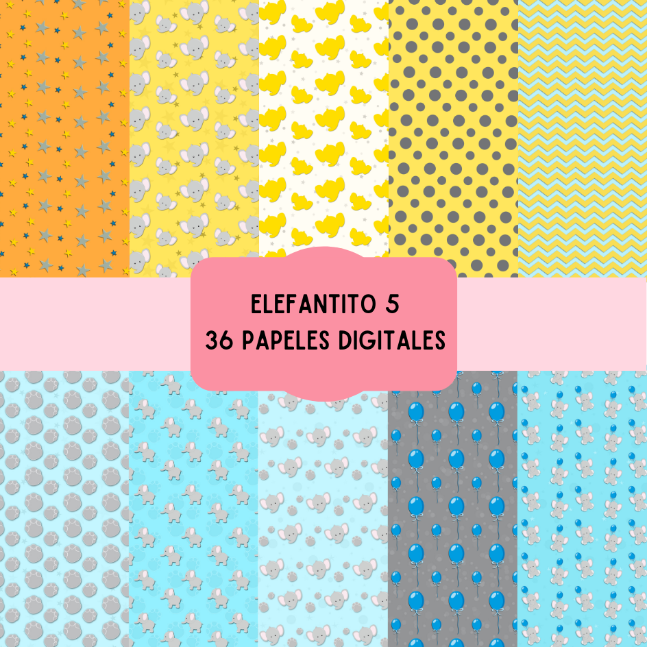 Cliparts + papeles digitales - ELEFANTE - coleccion 5