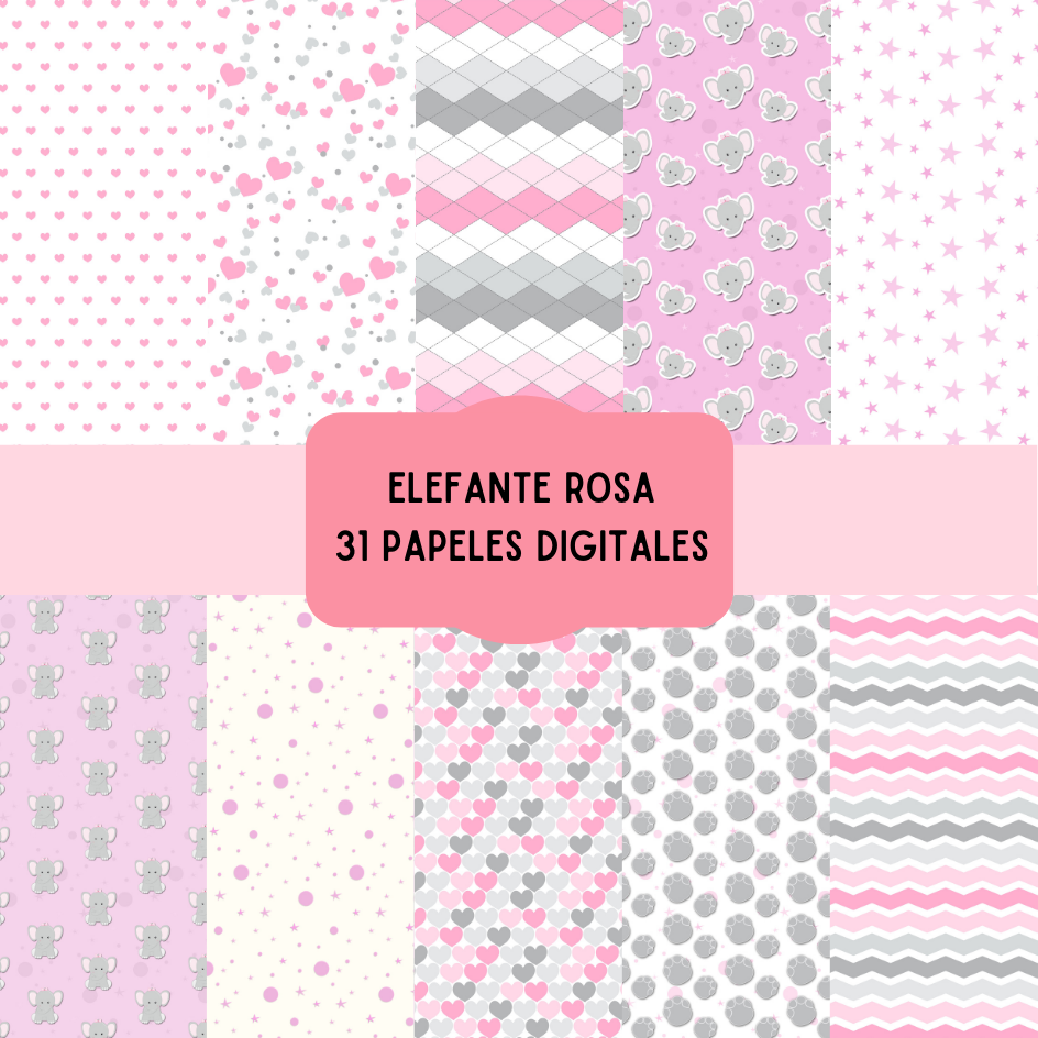 Cliparts + papeles digitales - ELEFANTE ROSA