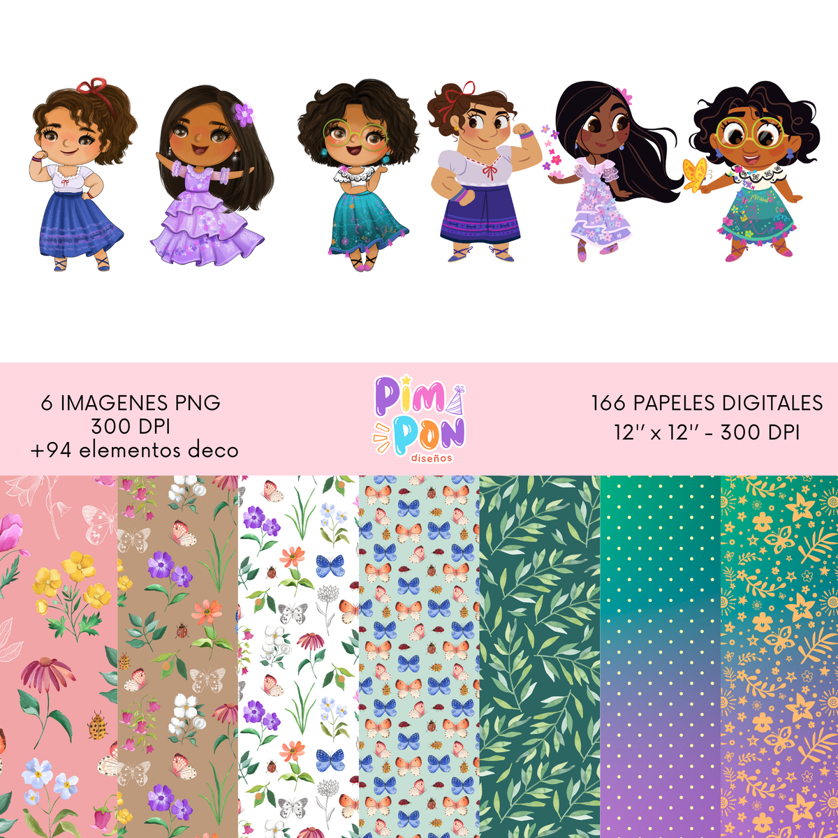 Cliparts + papeles digitales - ENCANTO chibi