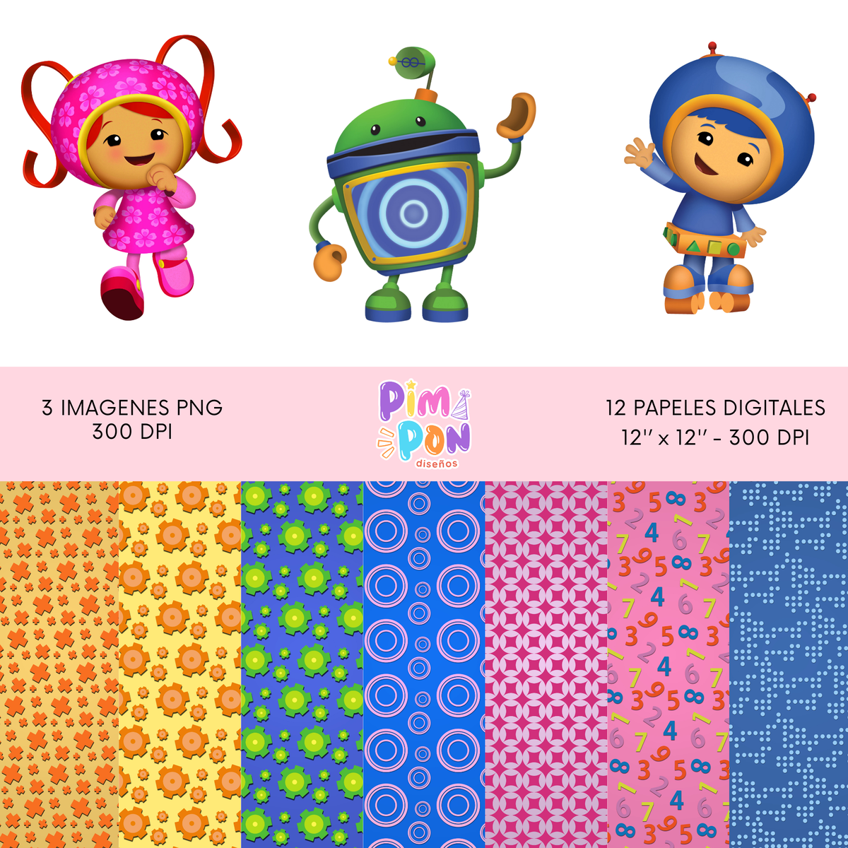 Cliparts + papeles digitales - equipo umizoomi