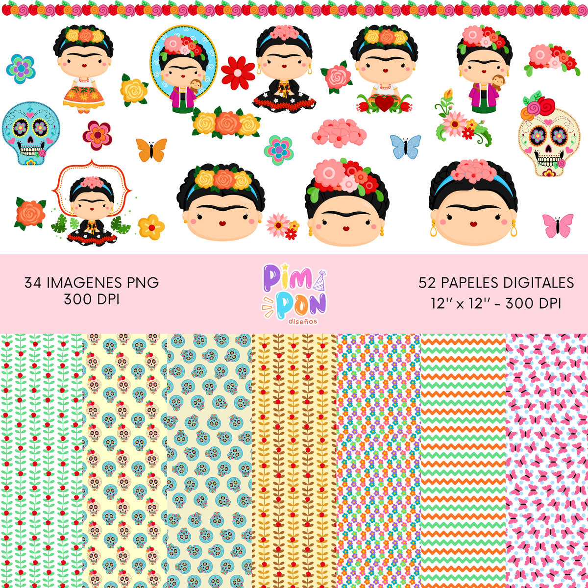 cliparts + papeles digitales - frida kahlo 02