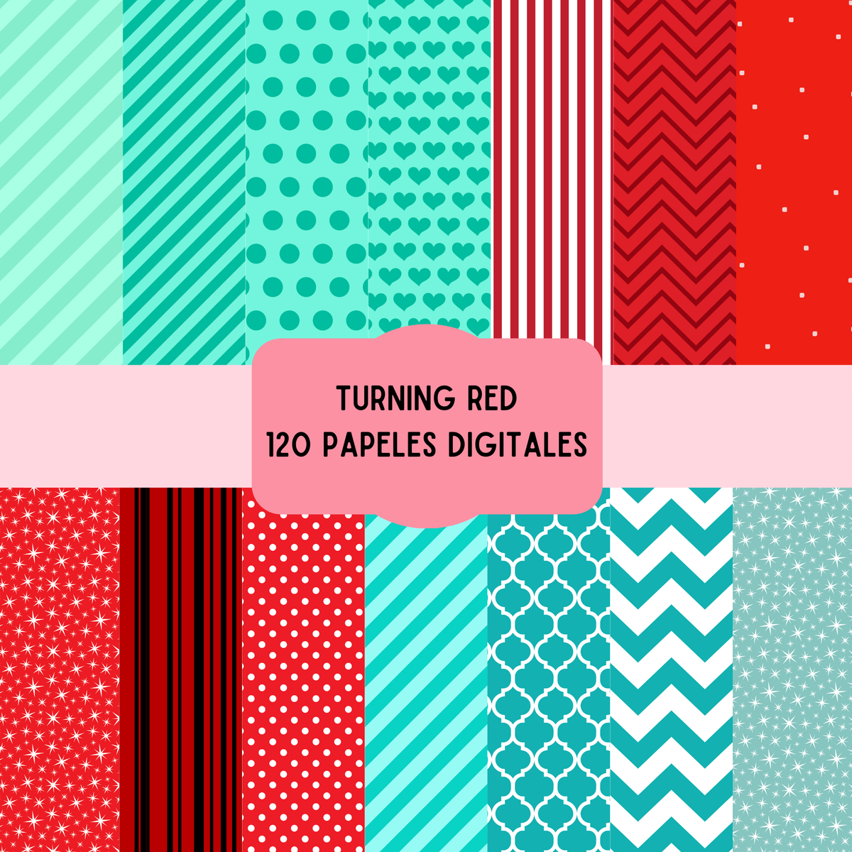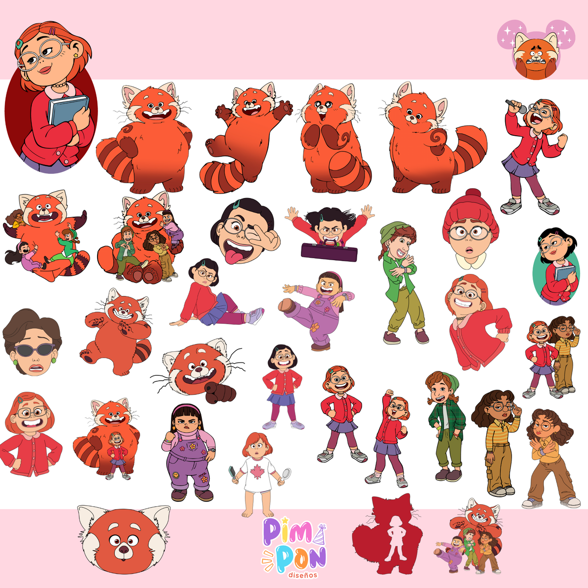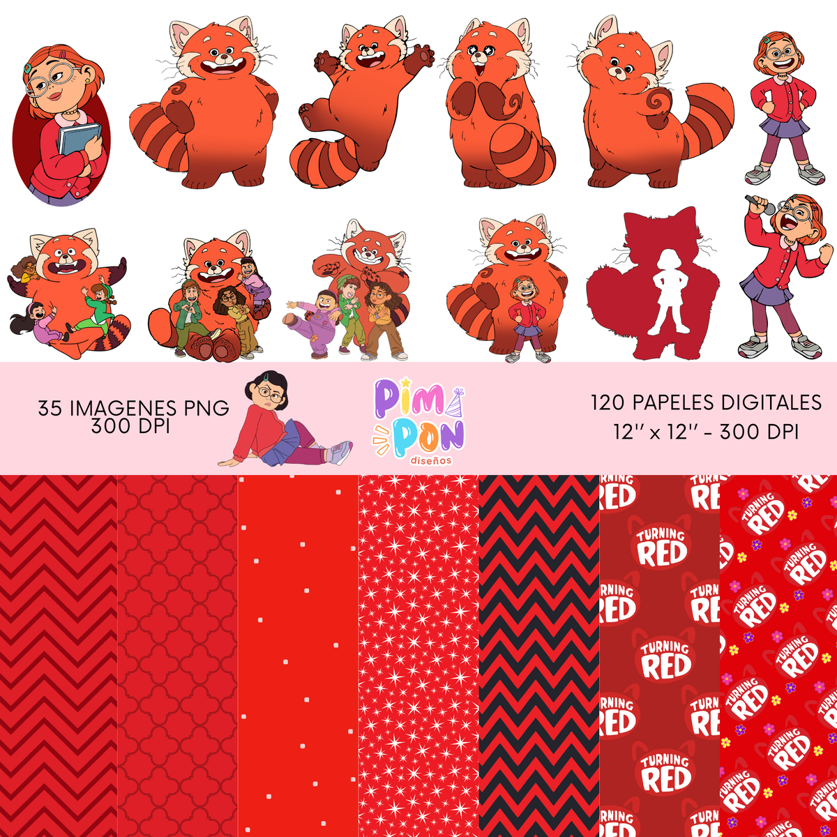 cliparts + papeles digitales - Turning Red - coleccion 1