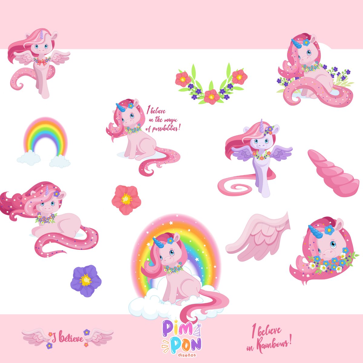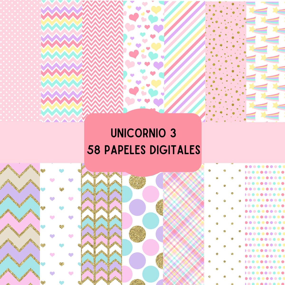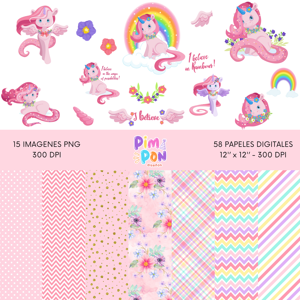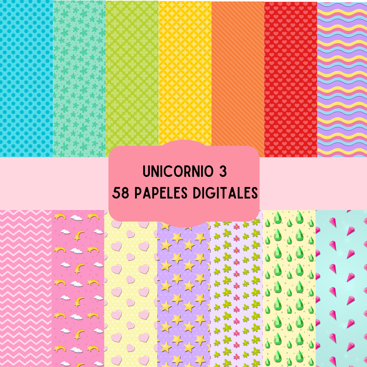 cliparts + papeles digitales - unicornio coleccion 3