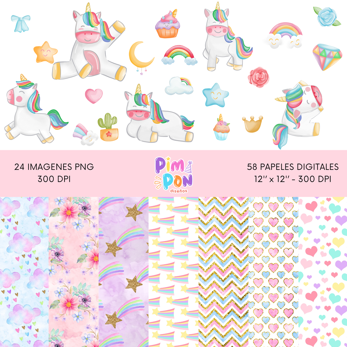 cliparts + papeles digitales - unicornio coleccion 7