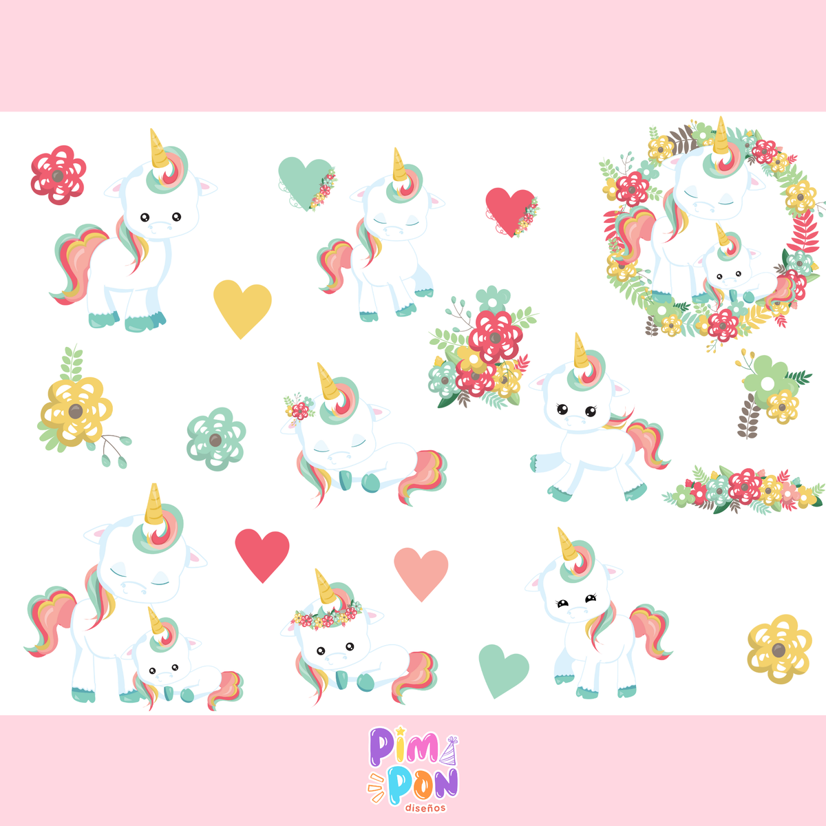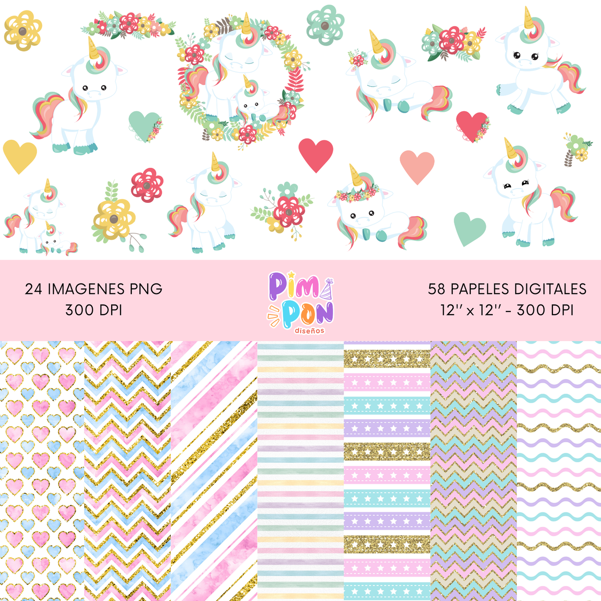 cliparts + papeles digitales - unicornio coleccion 14