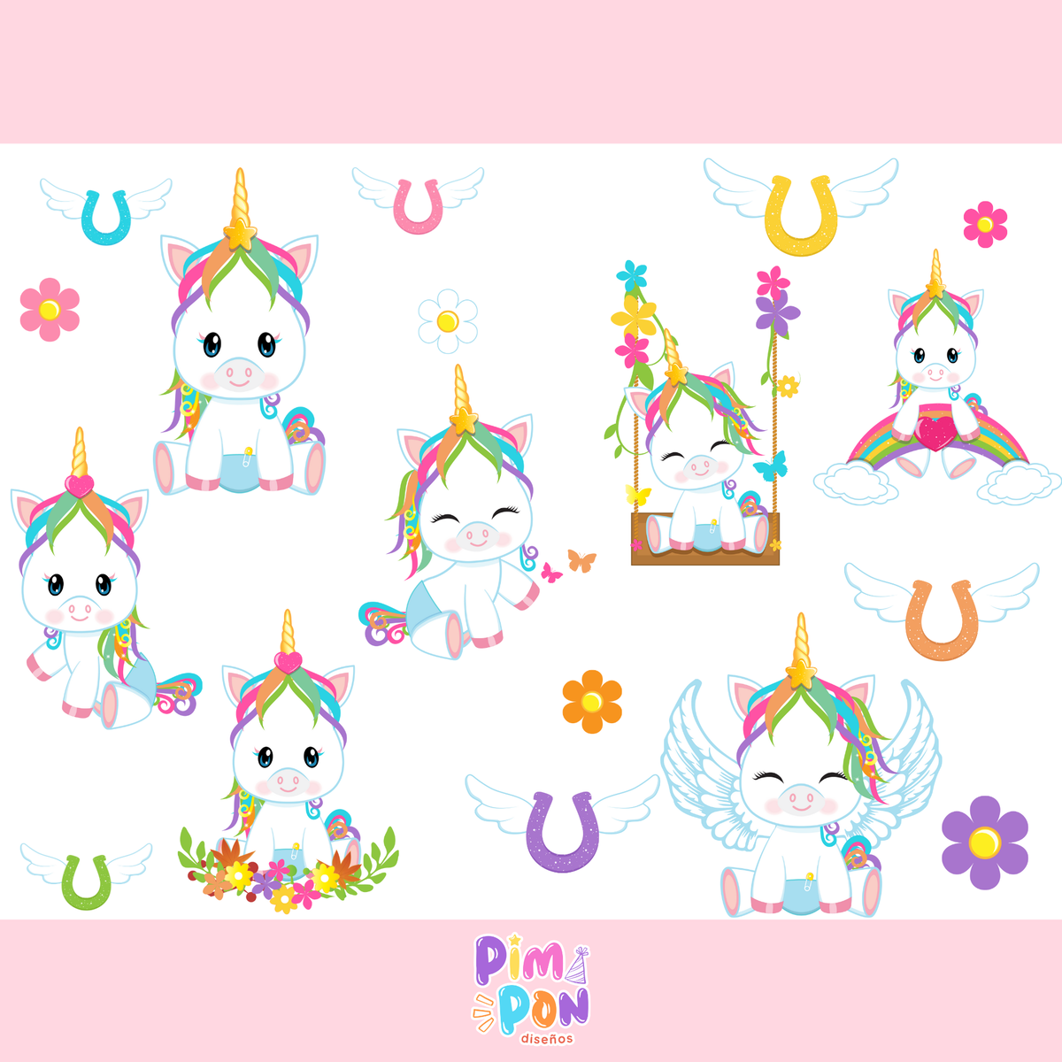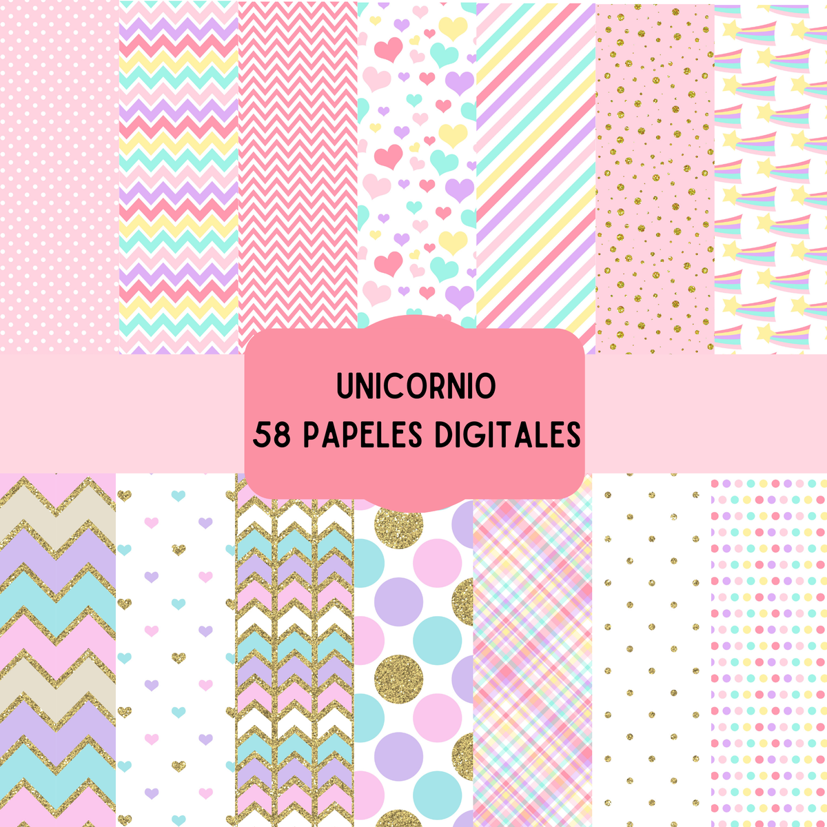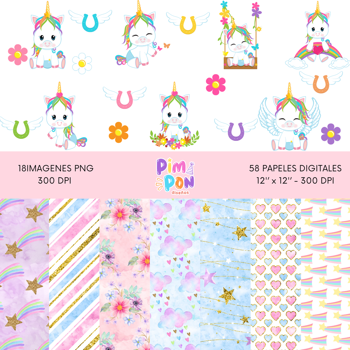 cliparts + papeles digitales - unicornio coleccion 15