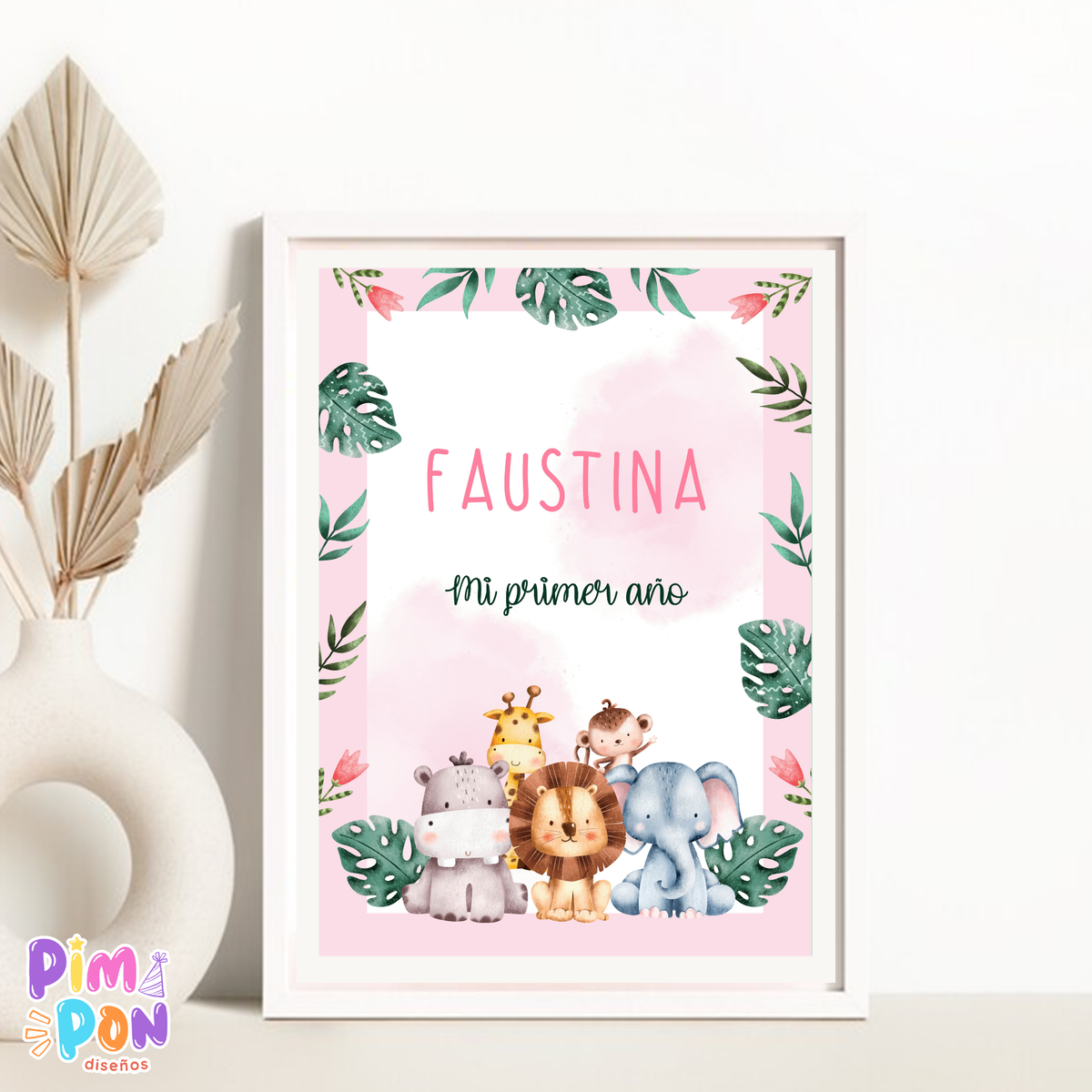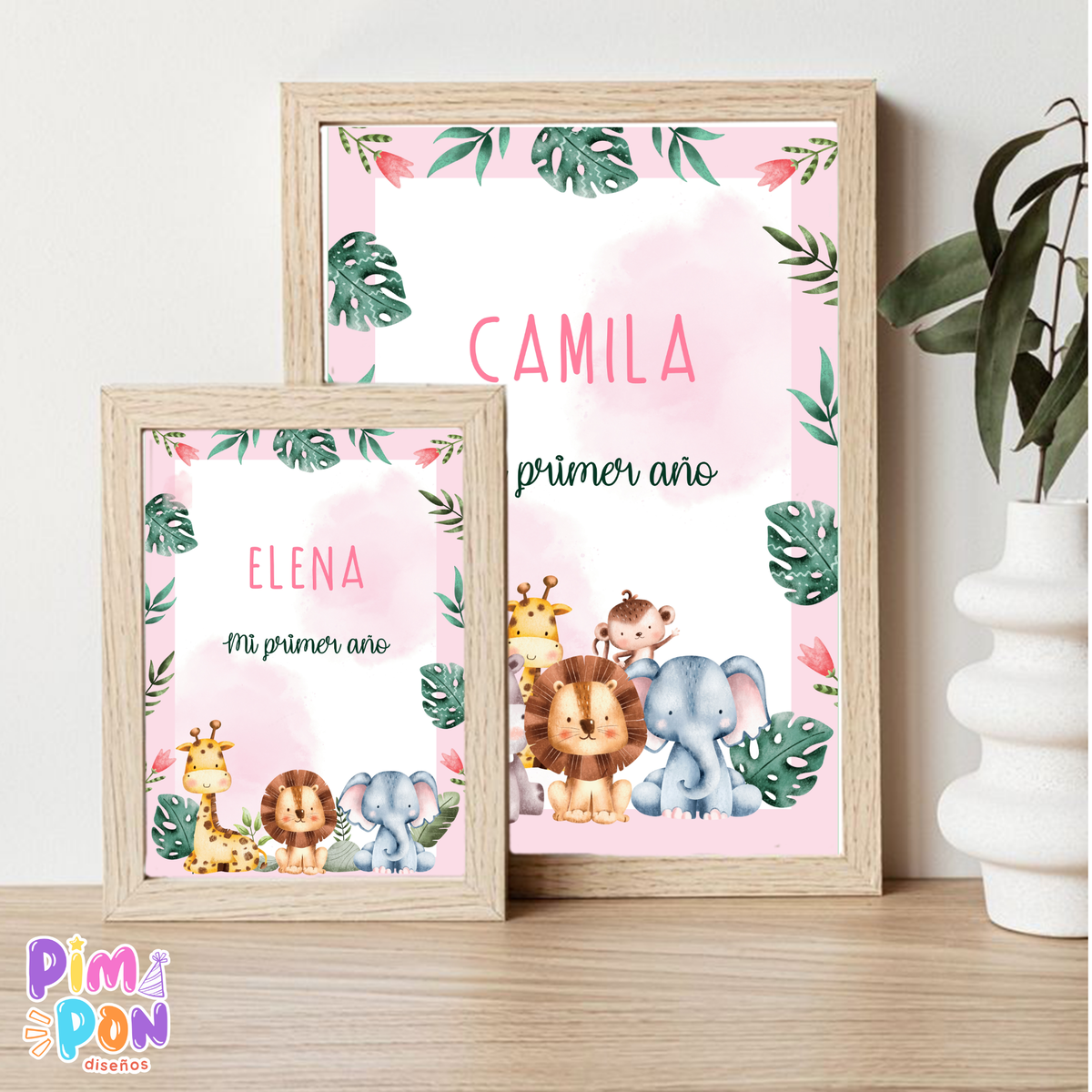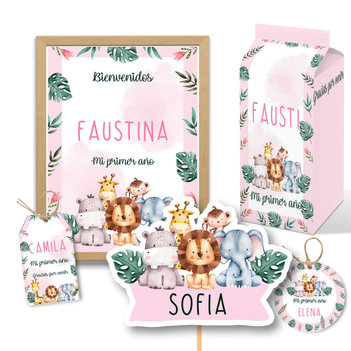kit imprimible textos editables - ANIMALITOS DE LA SELVA MOD. 2 ROSA