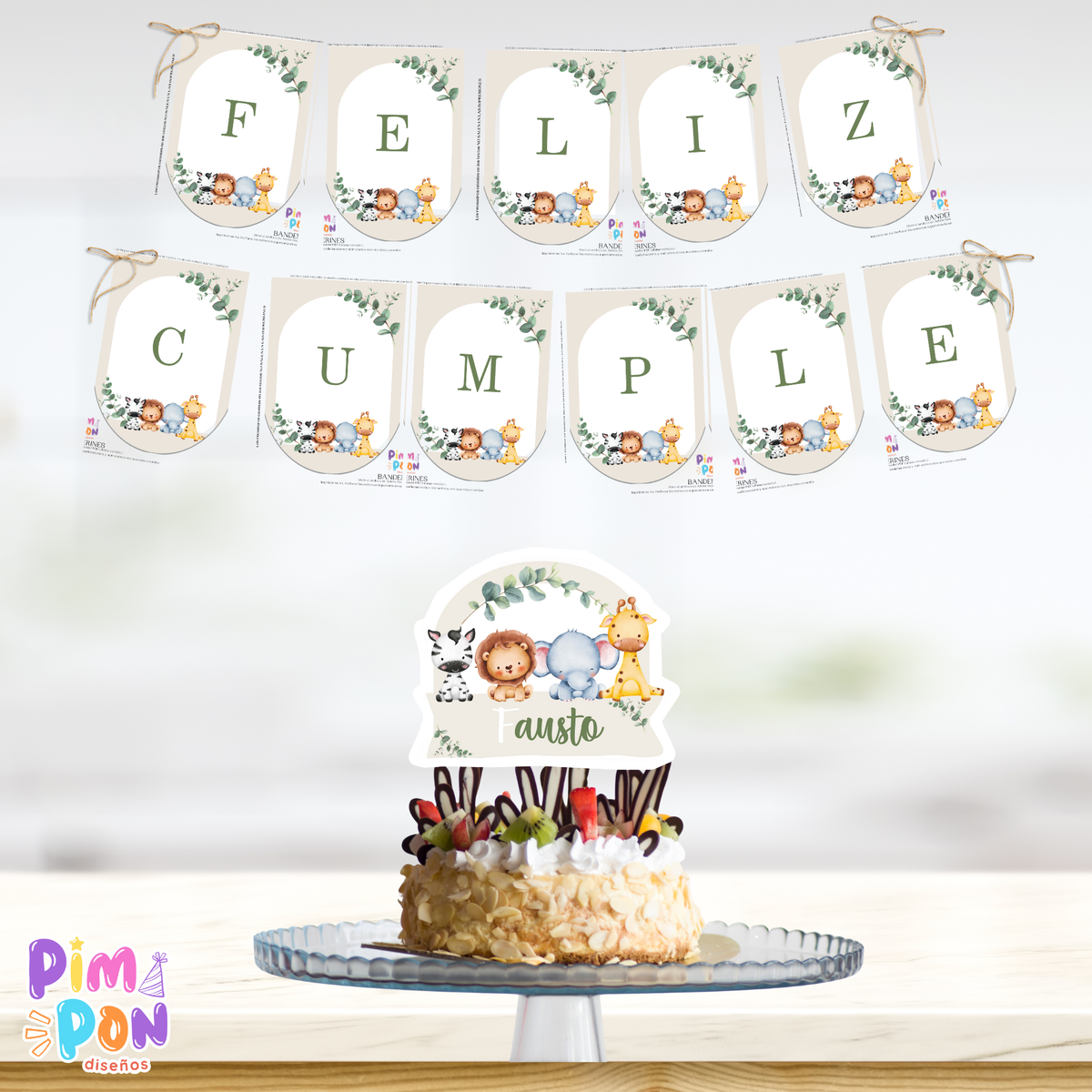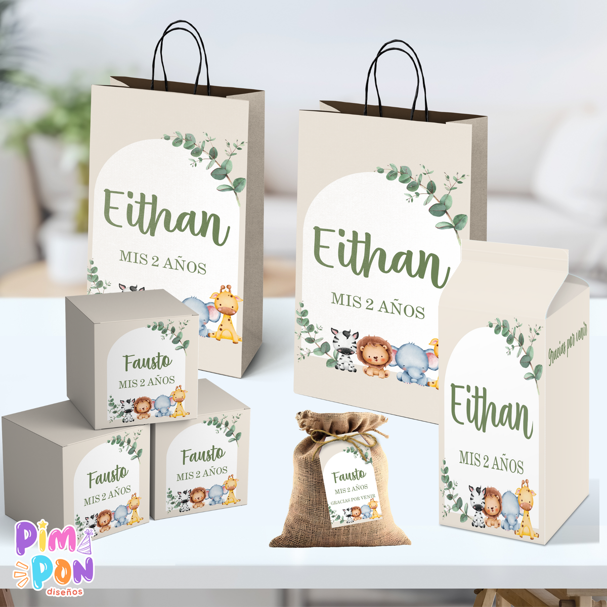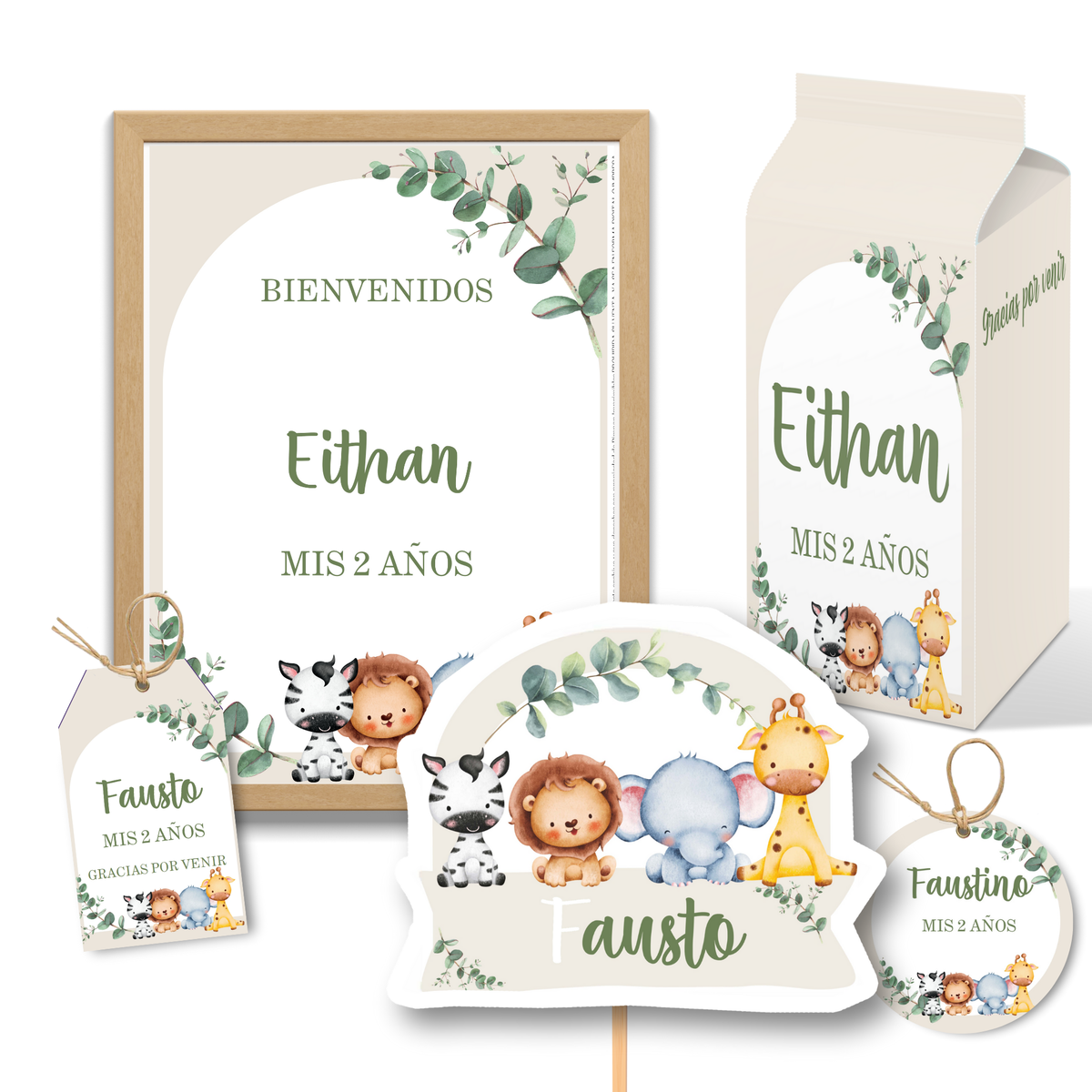 kit imprimible personalizado - ANIMALITOS SELVA BOHO
