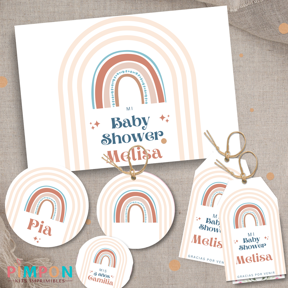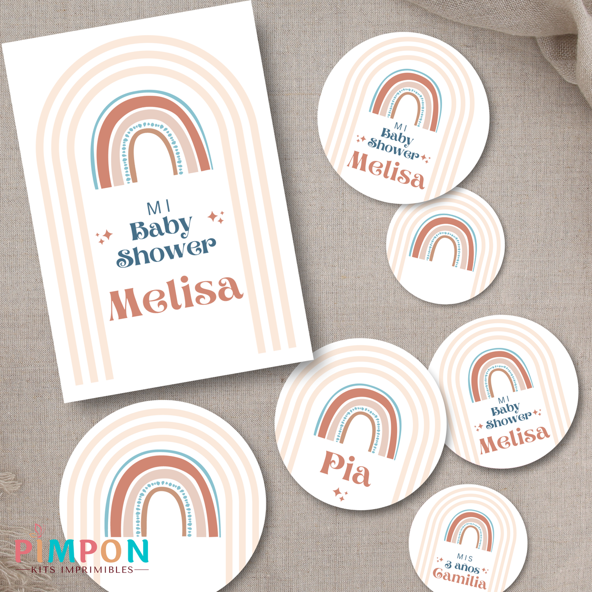 kit imprimible personalizado - ARCOIRIS BOHO 1