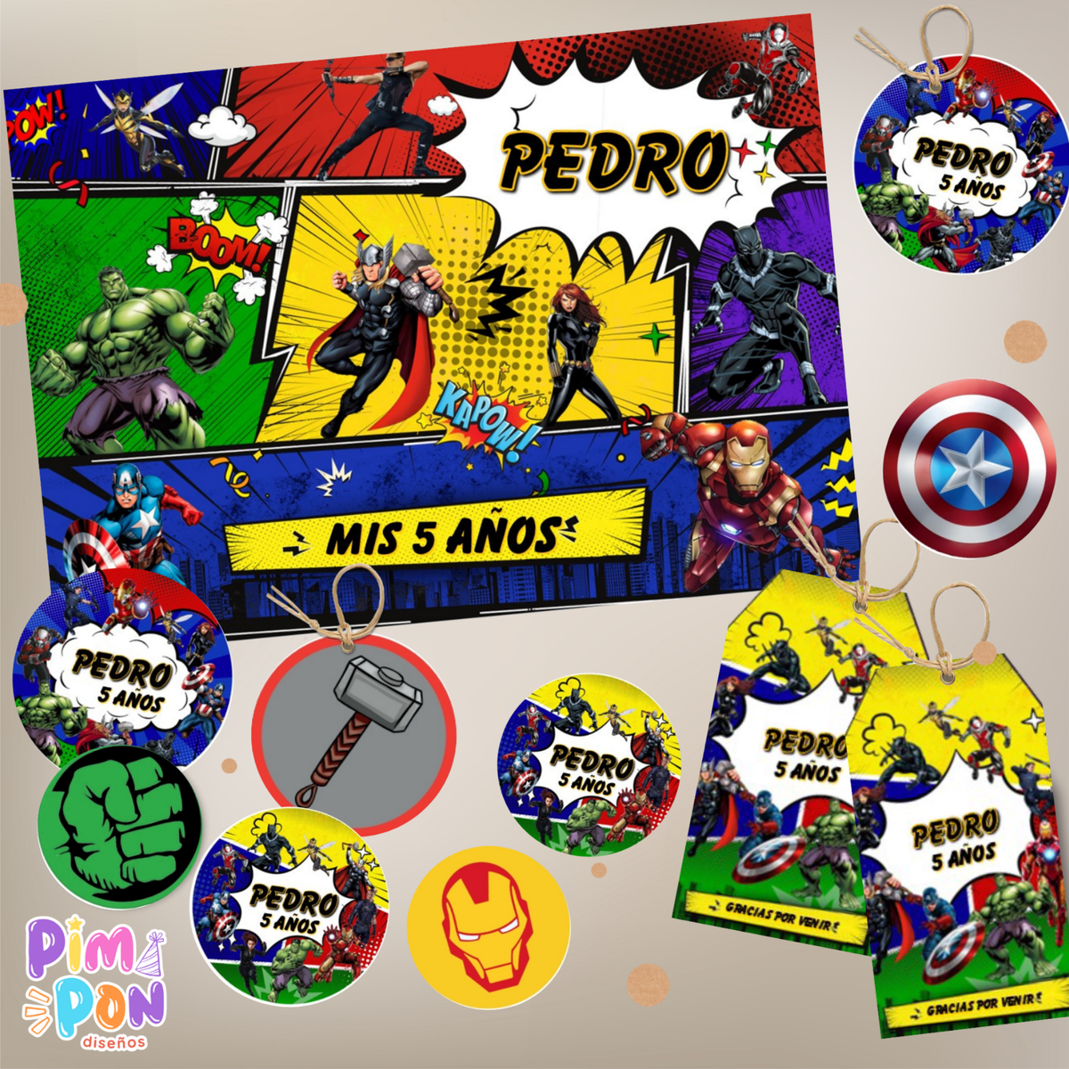 - El kit es tal como lo ves publicado, no hacemos cambios de personajes, tipografía o color.