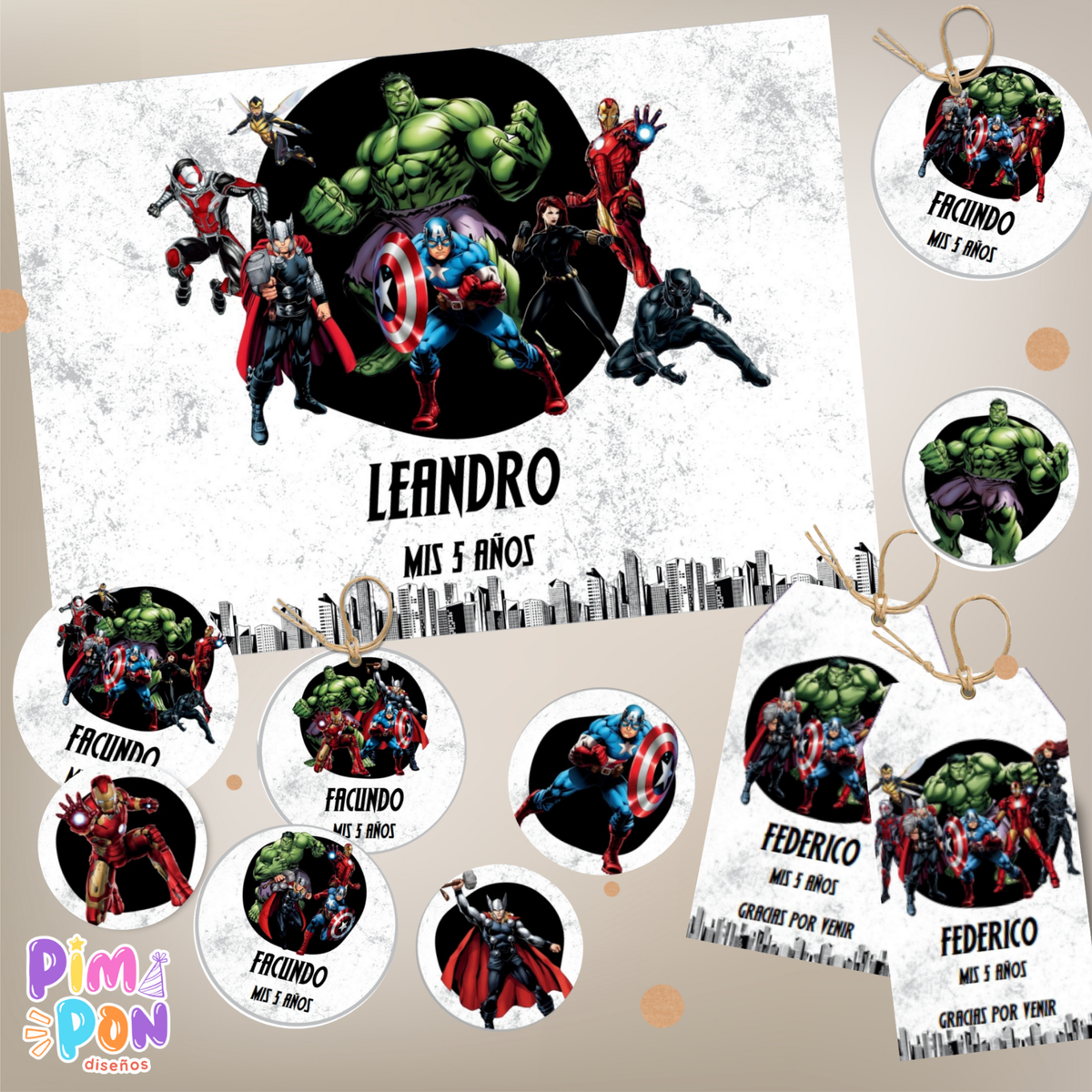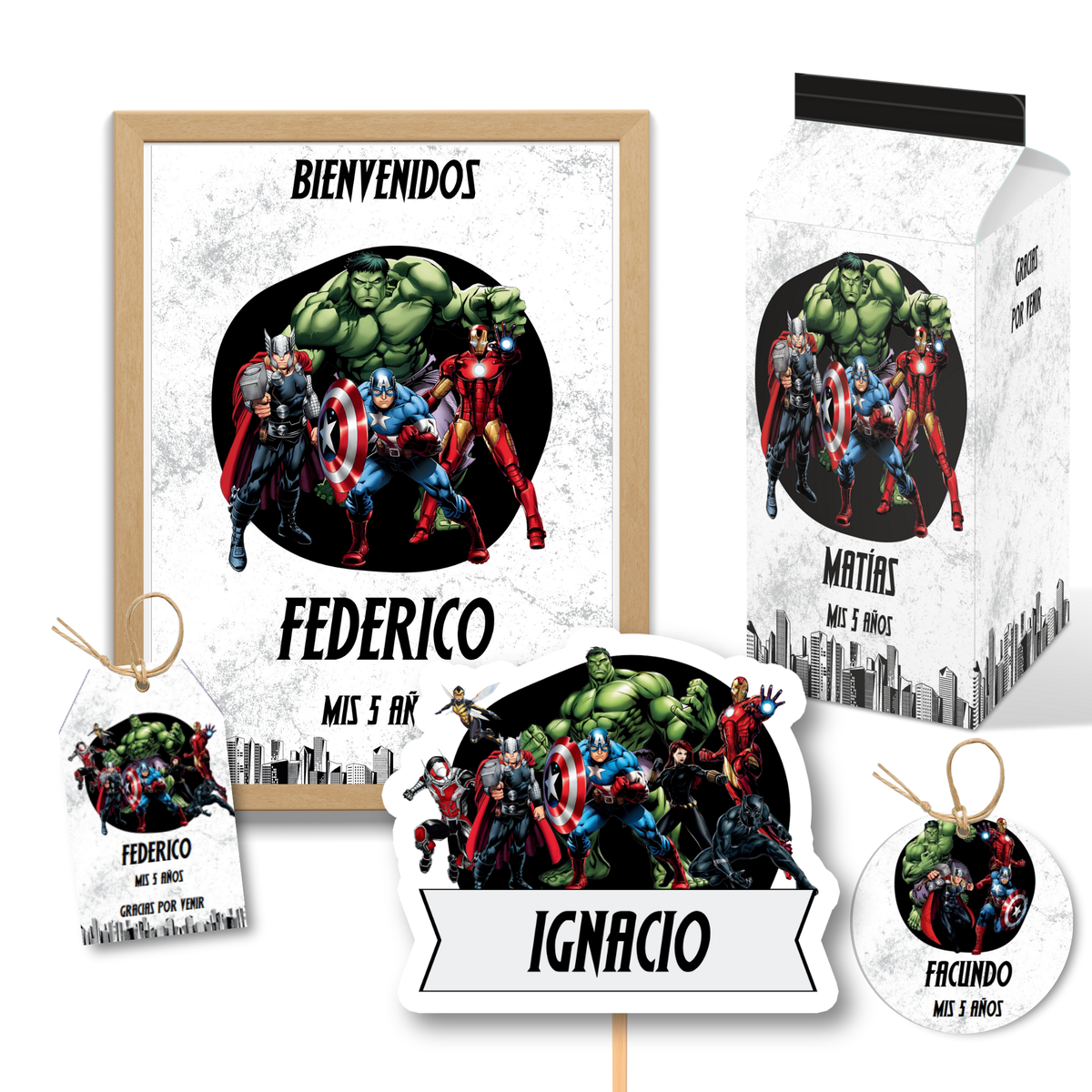 - El kit es tal como lo ves publicado, no hacemos cambios de personajes, tipografía o color.