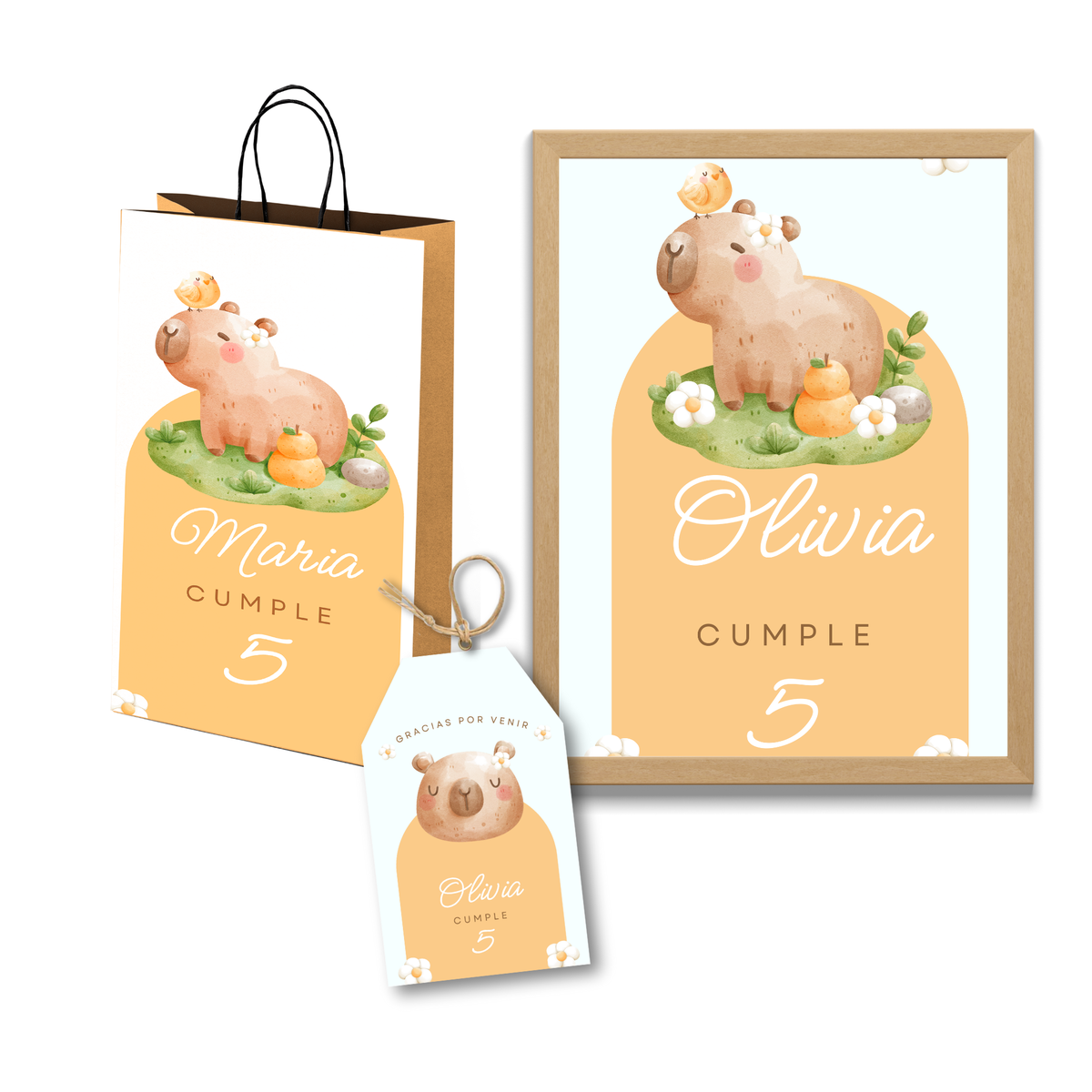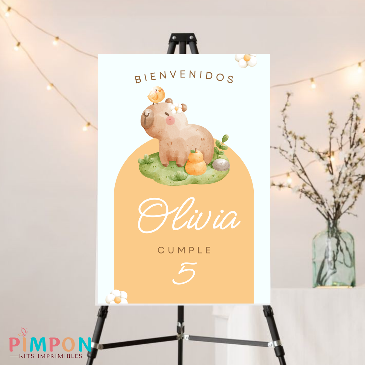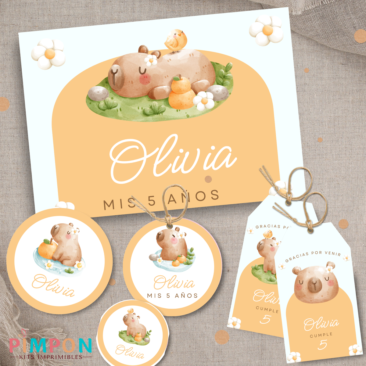 kit imprimible personalizado - CAPIBARA FLORES
