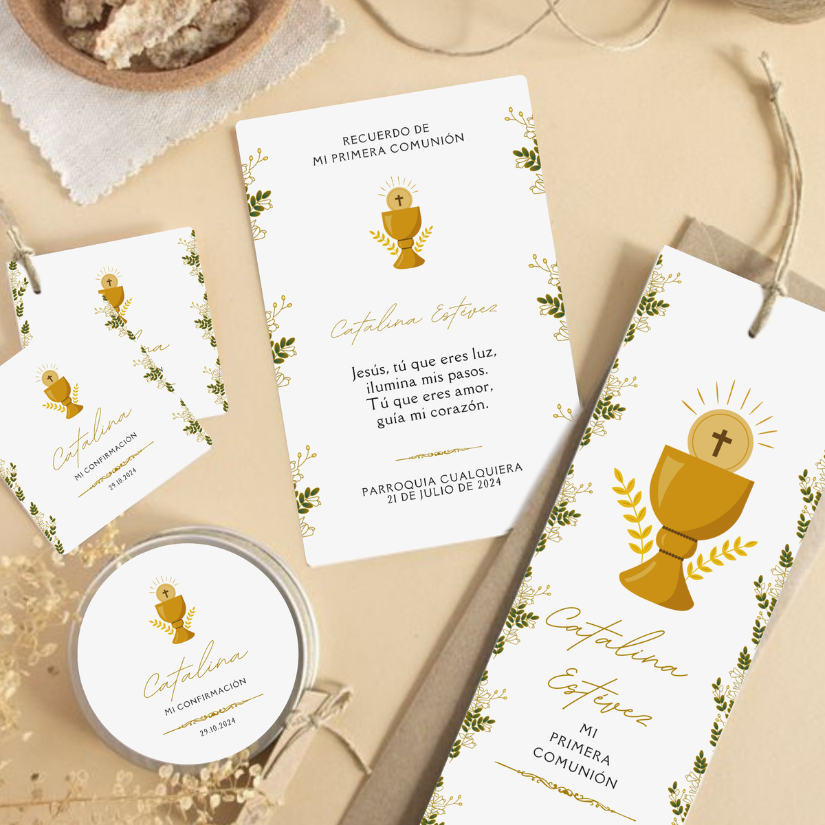 Banderin con evento (mi comunion, mi bautismo, etc)