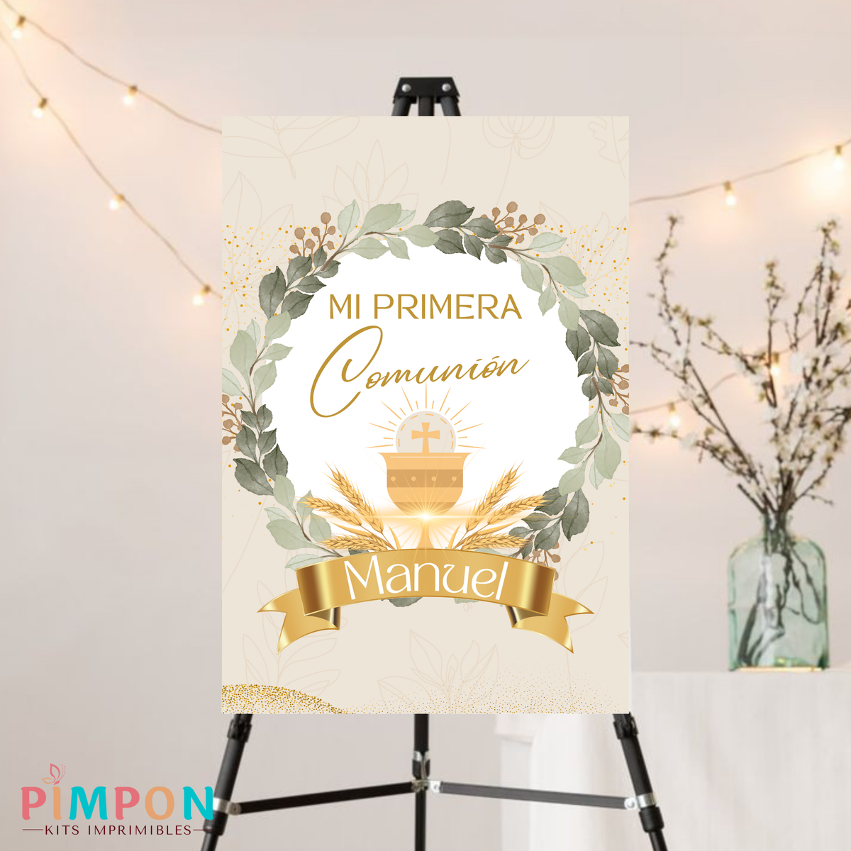 Banderin con evento (mi comunion, mi bautismo, etc)