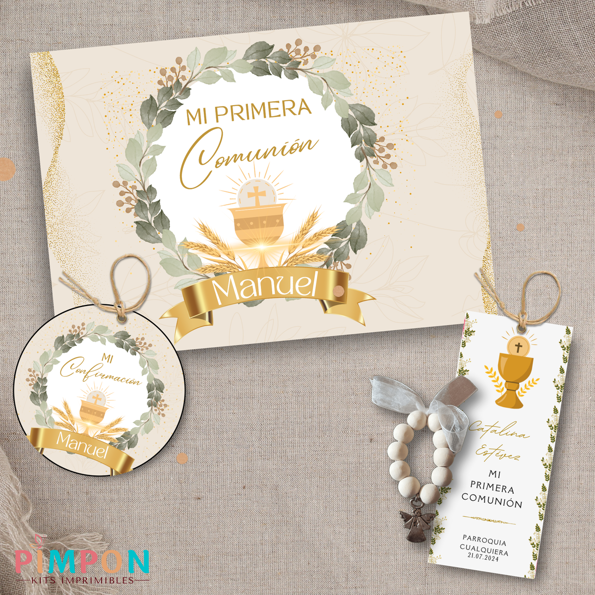 kit imprimible textos editables - COMUNION CONFIRMACION BAUTISMO MOD. 23