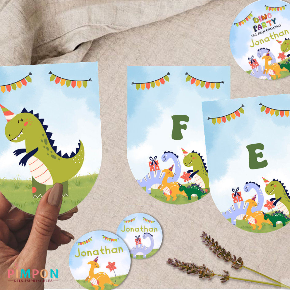 kit imprimible personalizado - DINOSAURIOS DINO PARTY VERDE